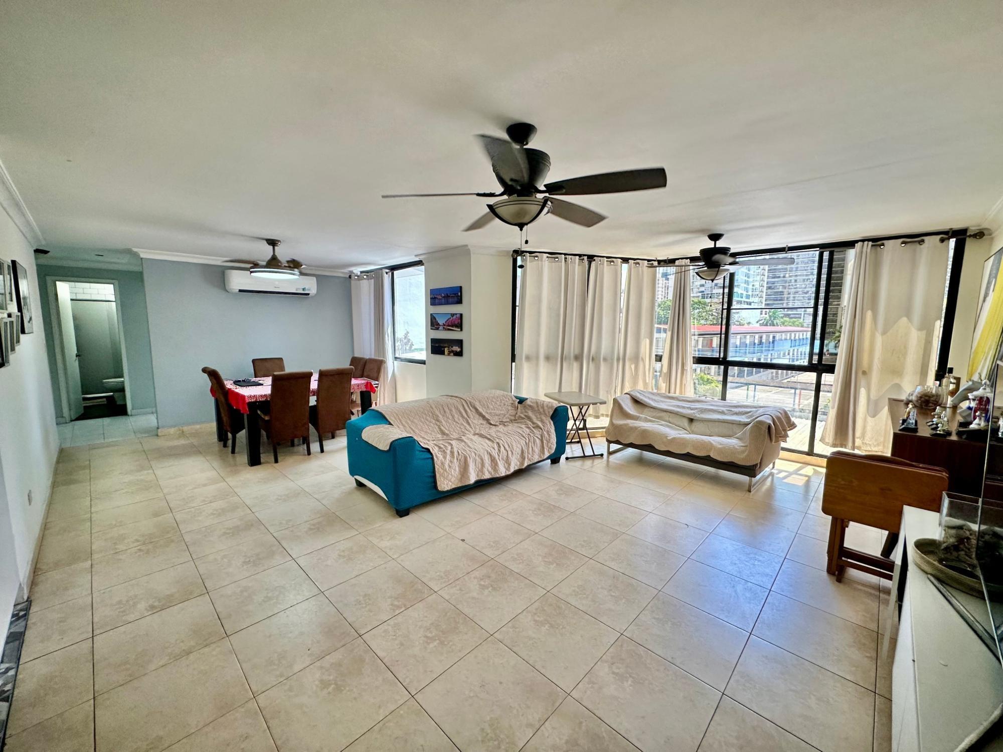 Spacious apartment located in PH Pelican Bay, San Francisco, one of the city's most central and convenient areas, with easy access to Omar Park, Via Porras, Calle 50, supermarkets, restaurants, and shops. It features 136.32 m², offering comfortable and functional spaces, ideal for families or those seeking a well-designed layout in a strategic location. Features: - 3 bedrooms - 2 bathrooms - 1 parking space - Maid's quarters with bathroom - Spacious living and dining room Includes: - Air conditioners - Light fixtures - Ceiling fans - Curtains - Appliances (negotiable) Additional Details: - Maintenance fee: $245 (includes gas) - Year built: 1993 - Social area with: Pool and lounge area Prime location near: - Omar Park - Supermarkets - Restaurants - Pharmacies - Easy access to main city roads The building does not have visitor parking.