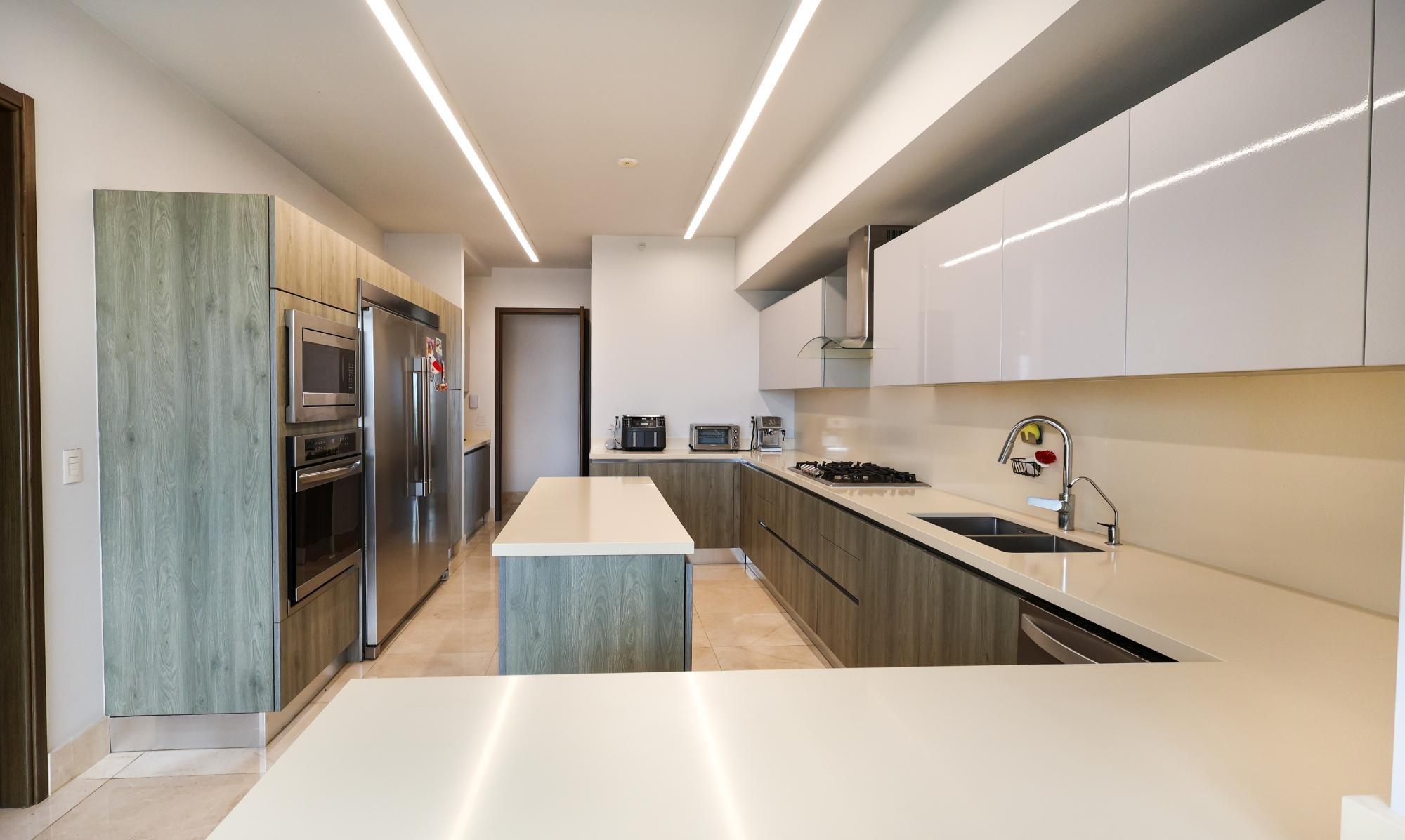 Discover the perfect balance of elegance, comfort, and location in this spectacular 314 m² apartment, located in Santa Maria, one of the most exclusive areas of the city. Designed for those who value a sophisticated lifestyle, this home offers spacious, functional spaces and top-of-the-range finishes. Layout and features: Spacious living and dining room: Inviting and filled with natural light, with direct access to a huge balcony offering stunning panoramic views of the Santa Maria golf course and the modern city skyline. 3 bedrooms: Each with its own private bathroom, providing maximum privacy and comfort. Family den: Ideal as a living room, home office, or entertainment area. Dream kitchen: Contemporary style, equipped with high-end Italian furniture, a center island, and a breakfast bar for enjoying family time. Maid's bedroom and bathroom: Completely independent. Luxury finishes: Marble floors, central air conditioning (BR), and first-class architectural details in every corner. PH GreenGarden Amenities: Living at GreenGarden means enjoying a private, secure environment surrounded by nature, without sacrificing exclusivity and comfort. Its amenities include: Elegant double-height lobby, swimming pools for adults and children, event room, fully equipped gym, children's play area, terraces and gardens, walking paths, 24/7 security and access control, parking for residents and visitors.