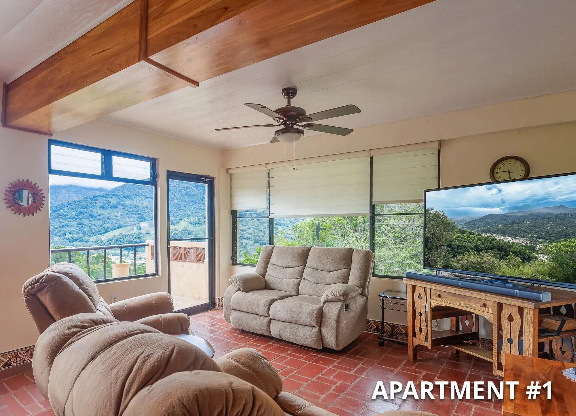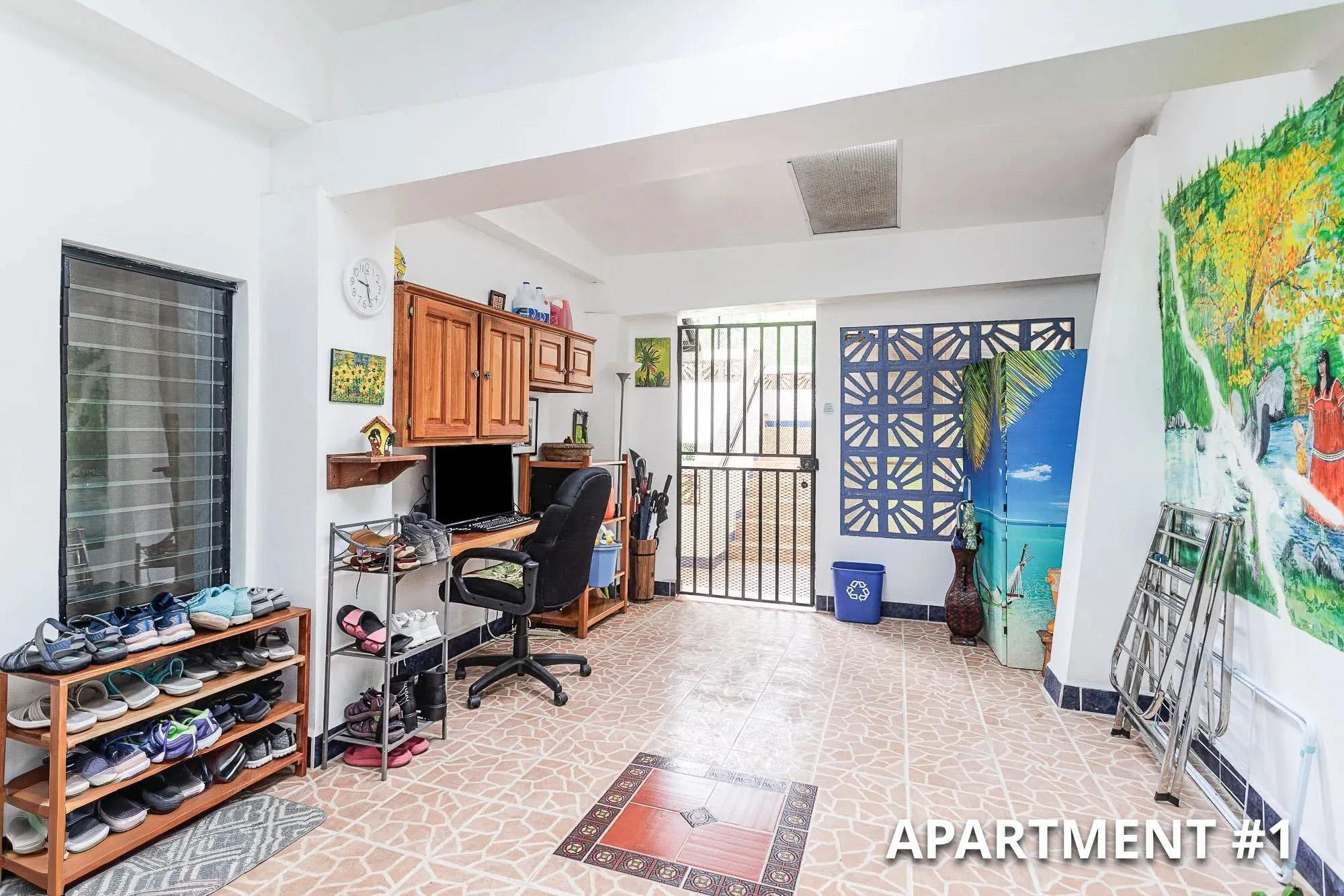 This three-story property is located in the Volcancito area of Boquete on a 1,001.71 m² lot, with approximately 5,939 sq. ft. of built space. It’s just 2.2 km from the main highway and about a 6-minute drive to downtown Boquete via paved roads. Volcancito is known for its cool climate and proximity to town, combining residential living with coffee-growing landscapes. Layout & Distribution The property includes: A main home Two apartments with independent entrances A separate casita on the upper level Three office spaces, ideal for work-from-home or additional rentals In total, the property features five bedrooms and six bathrooms, allowing for a variety of living or rental arrangements.