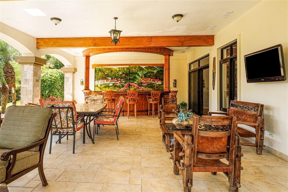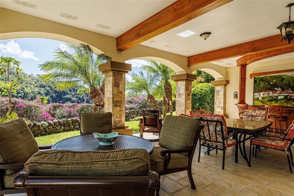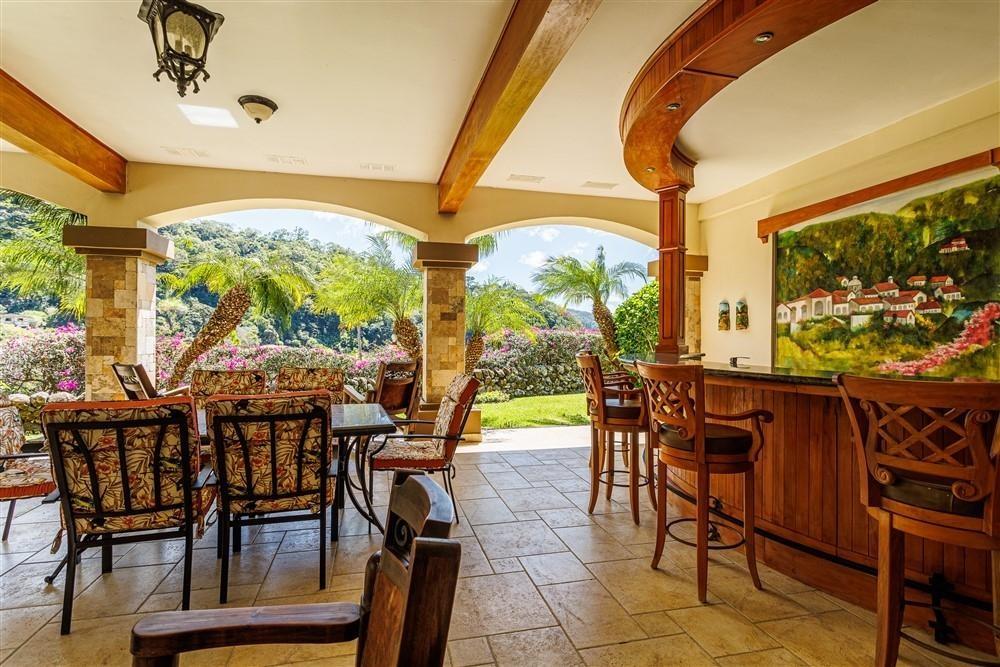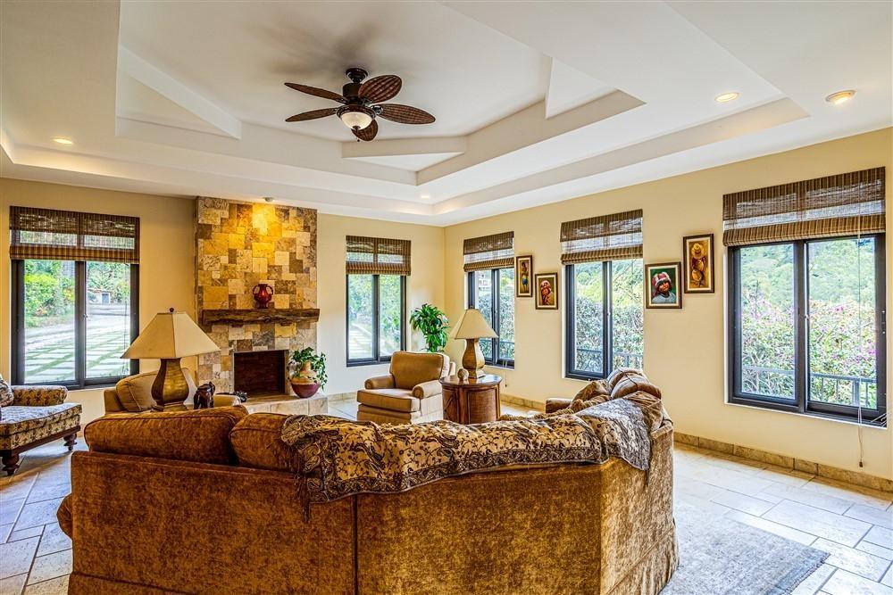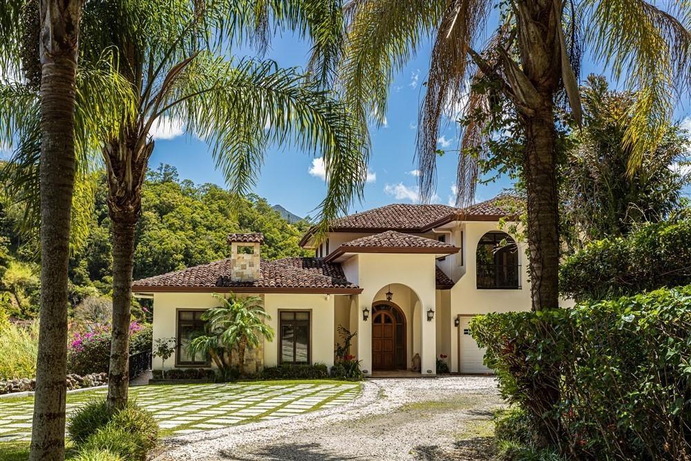 Set within Escondido Estates, the most private and exclusive gated section of Valle Escondido, this property sits elevated above the valley on approximately 1.25 acres of landscaped land. From here, the views open up over the valley floor and toward the surrounding mountains, giving the home a sense of space and perspective that is not easy to replicate within a community setting. The approach already tells you what to expect. A long driveway framed by mature tropical palms leads to the residence, creating a quiet transition from the outside world into something more private. The Home The architecture leans Mediterranean, but what you feel more than anything is warmth. Arched doorways, wood details, and natural tones soften the scale of the home and make it feel lived-in rather than formal. From the moment you walk in, the spaces open gradually, never all at once, revealing different living areas, terraces, and viewpoints as you move through the house. Large windows throughout bring in natural light and keep the connection to the landscape constant. In Boquete, where the climate is cooler and more temperate year-round, these spaces become part of daily life rather than occasional use. Living Spaces That Actually Work One of the strengths of this home is how it handles space. Instead of one oversized living area, the house offers three separate living rooms, each with its own purpose. Some are better suited for quiet evenings by the fireplace, others naturally lend themselves to gathering with friends or family. The same applies to the dining areas. There is a more informal space connected to the kitchen for everyday meals.