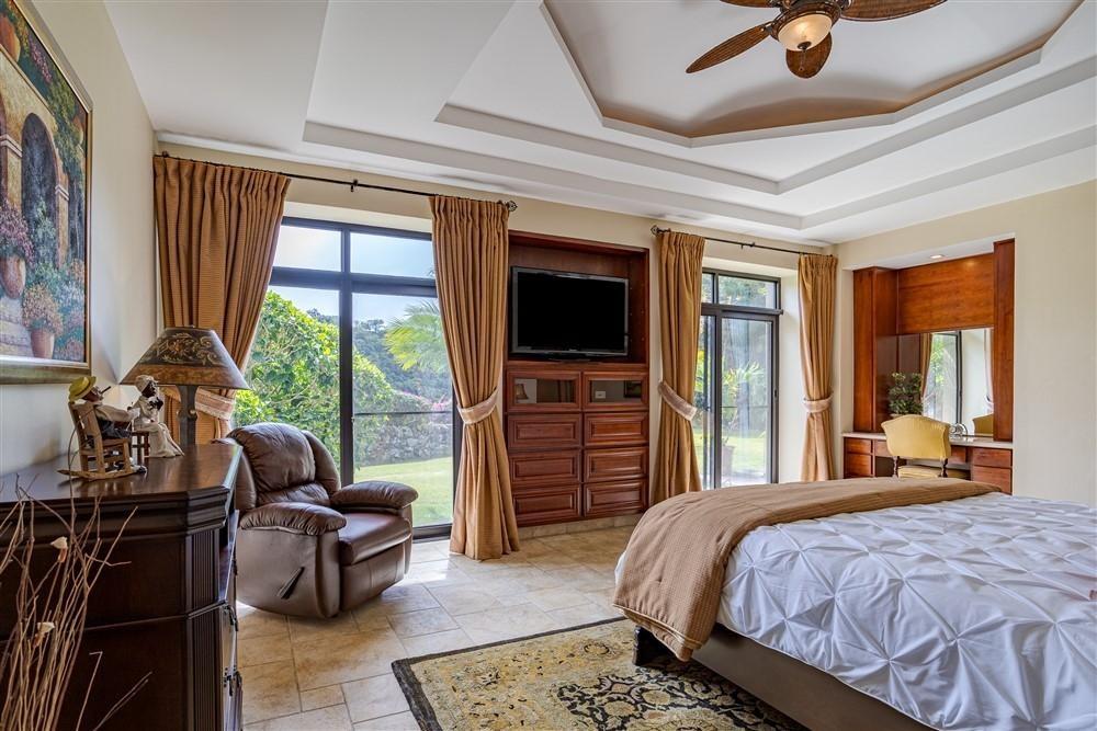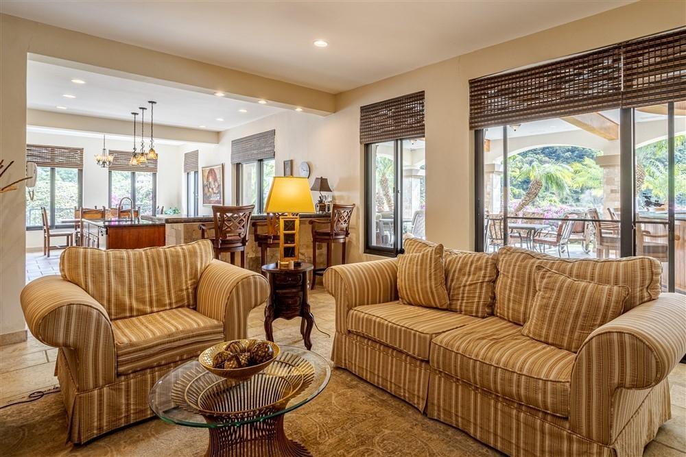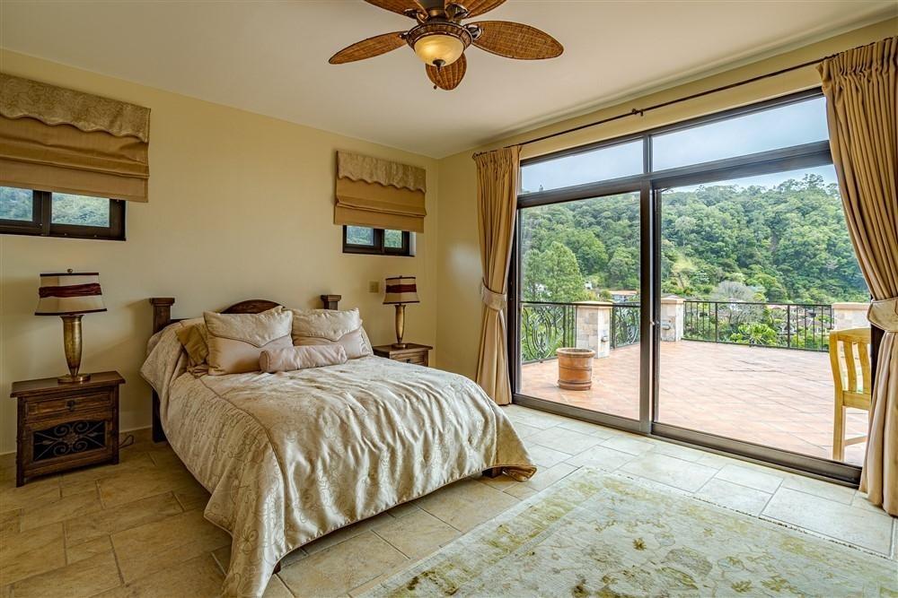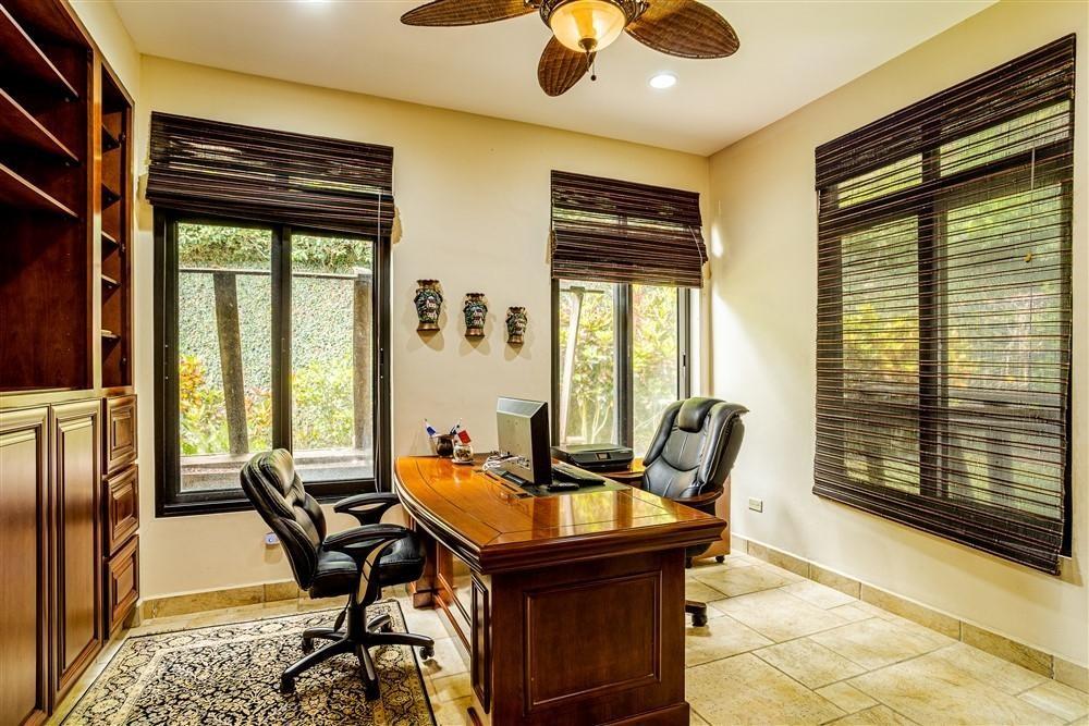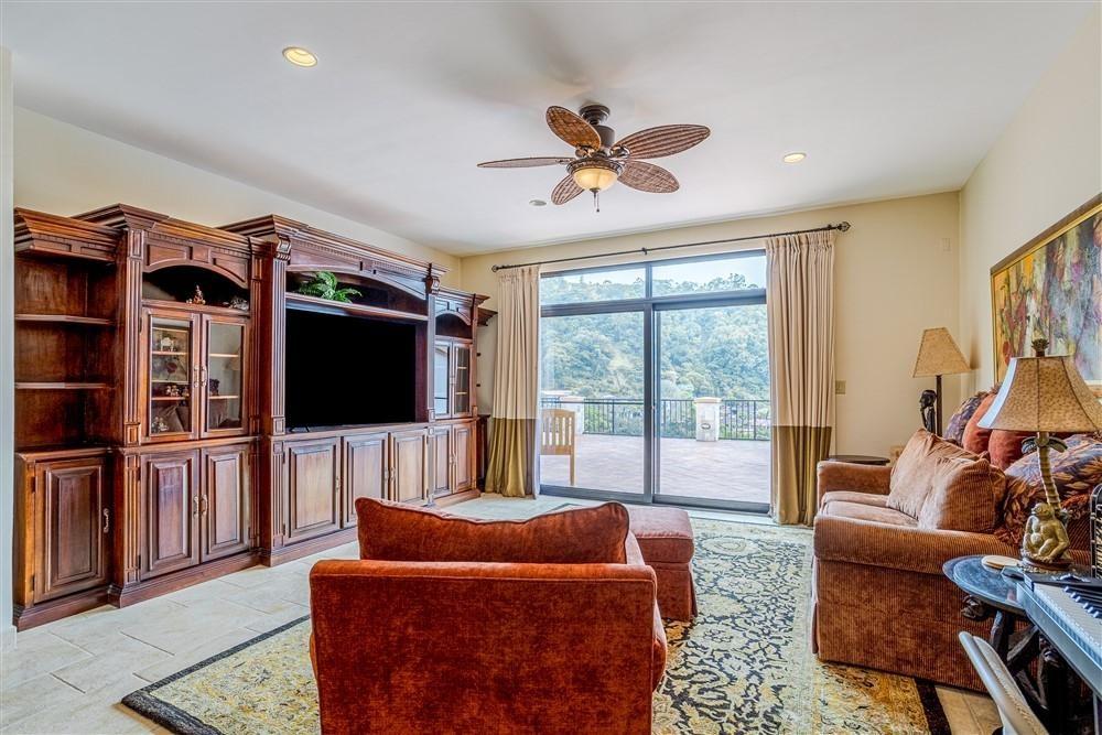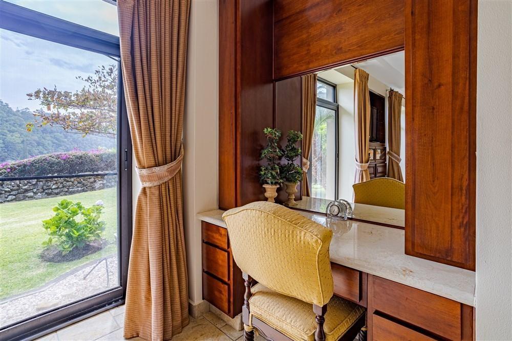 Set within Escondido Estates, the most private and exclusive gated section of Valle Escondido, this property sits elevated above the valley on approximately 1.25 acres of landscaped land. From here, the views open up over the valley floor and toward the surrounding mountains, giving the home a sense of space and perspective that is not easy to replicate within a community setting. The approach already tells you what to expect. A long driveway framed by mature tropical palms leads to the residence, creating a quiet transition from the outside world into something more private. The Home The architecture leans Mediterranean, but what you feel more than anything is warmth. Arched doorways, wood details, and natural tones soften the scale of the home and make it feel lived-in rather than formal. From the moment you walk in, the spaces open gradually, never all at once, revealing different living areas, terraces, and viewpoints as you move through the house. Large windows throughout bring in natural light and keep the connection to the landscape constant. In Boquete, where the climate is cooler and more temperate year-round, these spaces become part of daily life rather than occasional use. Living Spaces That Actually Work One of the strengths of this home is how it handles space. Instead of one oversized living area, the house offers three separate living rooms, each with its own purpose. Some are better suited for quiet evenings by the fireplace, others naturally lend themselves to gathering with friends or family. The same applies to the dining areas. There is a more informal space connected to the kitchen for everyday meals.