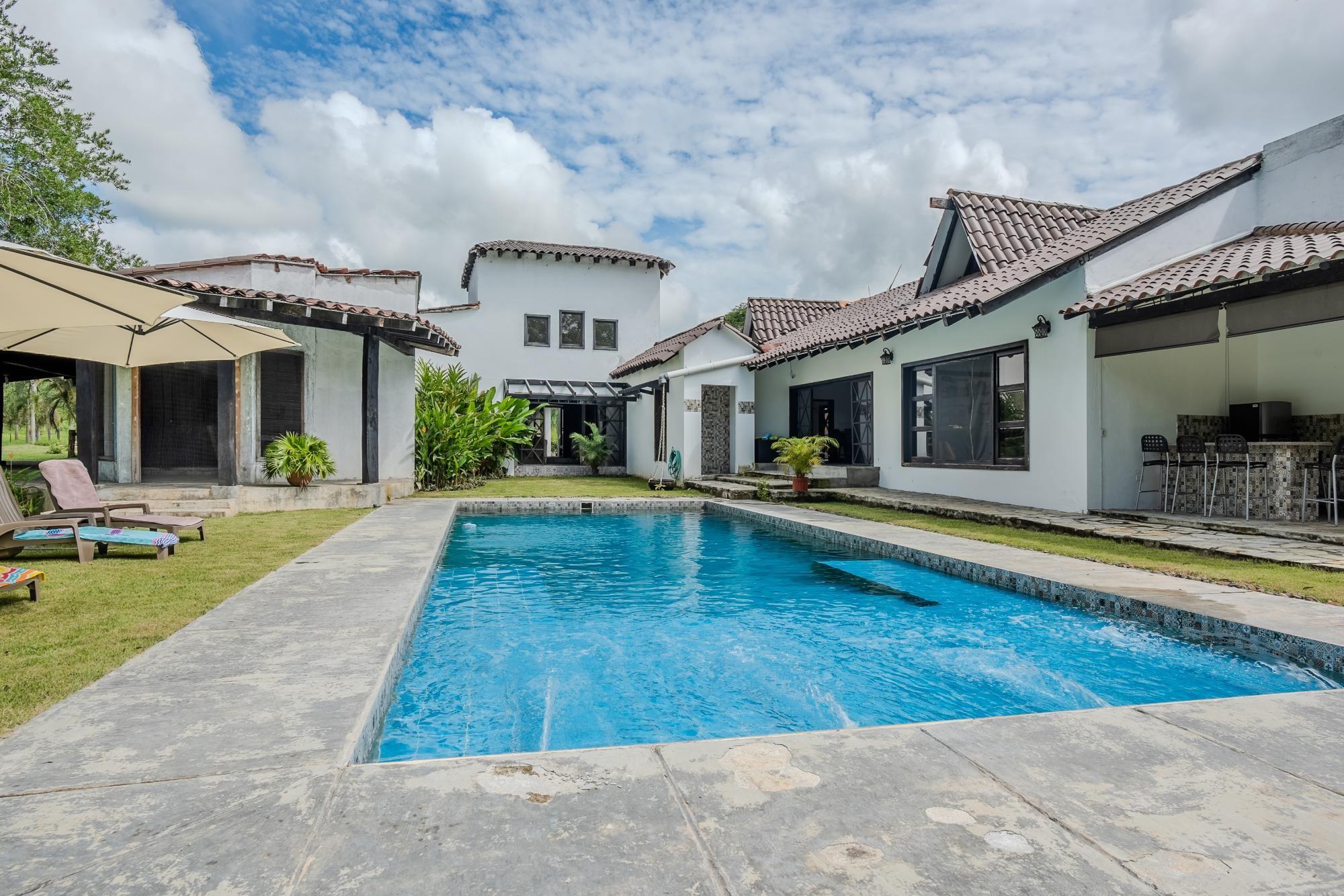 Discover paradise at Finca El Nido, Antón! This incredible property features a main house of 900 m² (9,687.51 ft²) offering 4 bedrooms with en-suite bathrooms, cathedral-style double-height ceilings, a spacious kitchen with double pantries and a double central island with a breakfast bar, a living room, a dining room with a terrace, a family room, an office, and a guest bathroom. The amenities of this estate are first-class, including a refreshing pool, a large terrace for relaxation, a bar perfect for gatherings, and beautiful gardens with a palm tree plantation. Additionally, there is a caretaker's house and a service room, all situated on a lush 46,000 m² (495,140 ft²) lot with a unique inventory of plants and palms. The property also offers 2 covered parking spaces and split air conditioning for added comfort. Located in Antón, Coclé, this estate is a gem that combines the tranquility of a country home with the amenities of a resort. It is ideal as a coastal property, country home, farm for sale, lakefront property, mountain property, ranch, resort, retirement home, timberland property, or as an investment and income source. Don’t miss this unique opportunity to invest in a life surrounded by nature and luxury. Contact us now and secure your piece of paradise!
