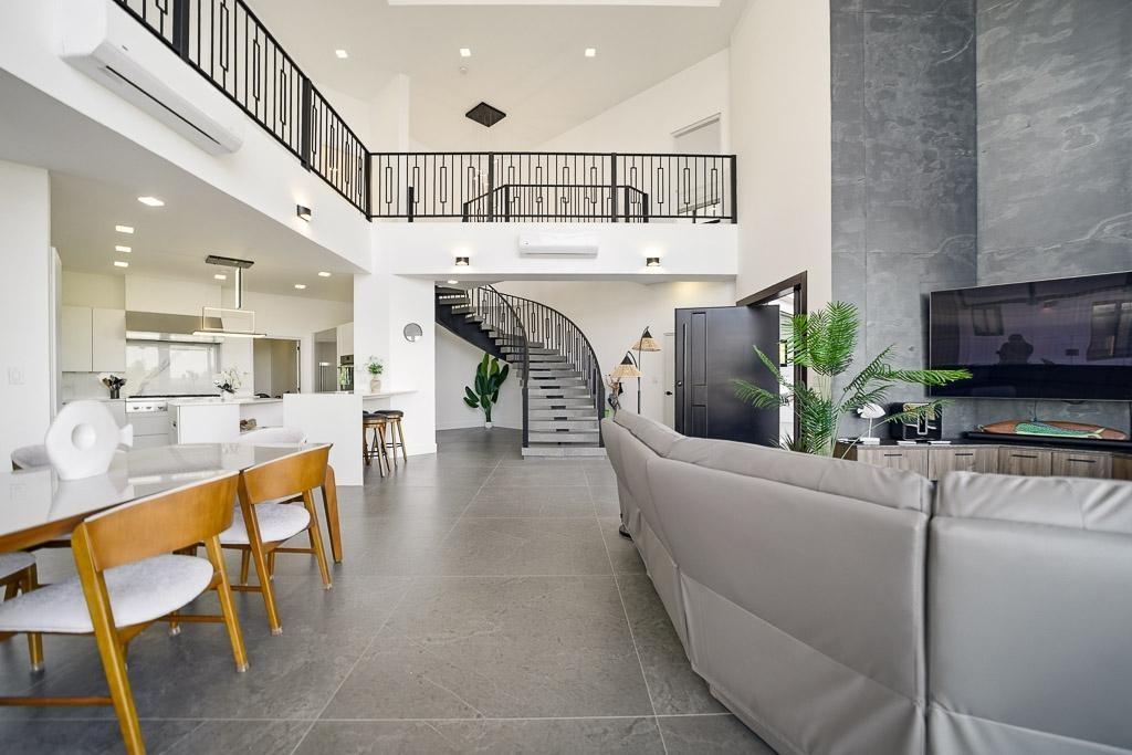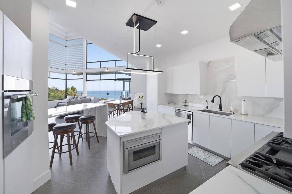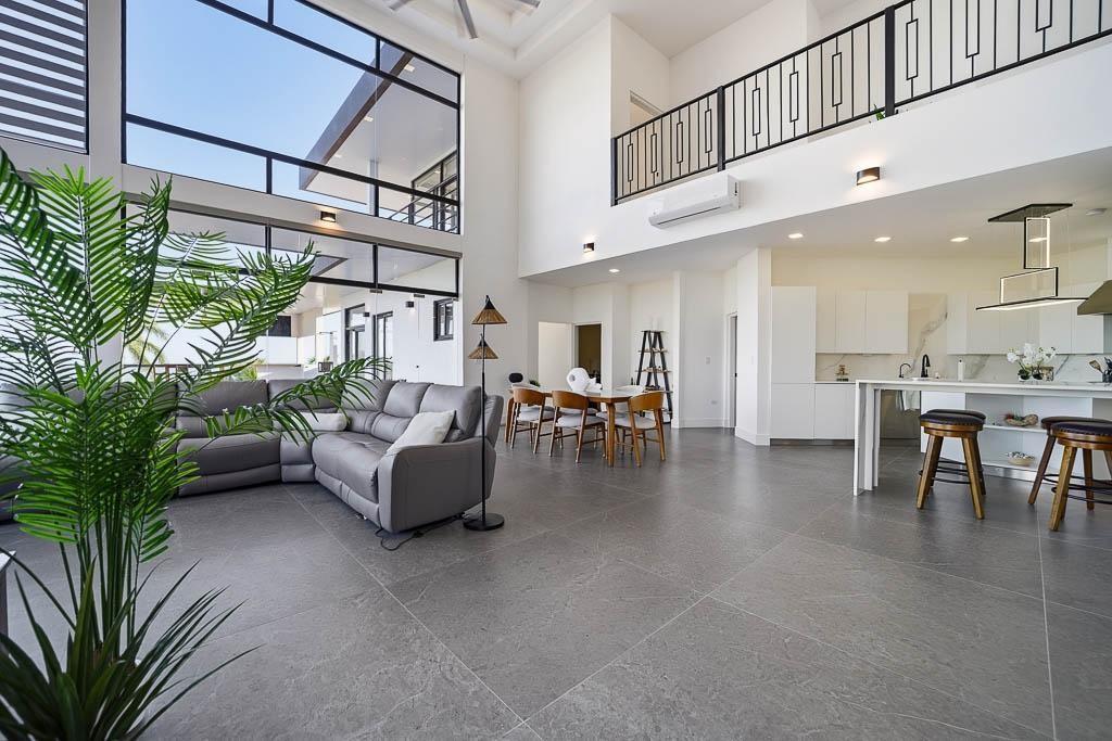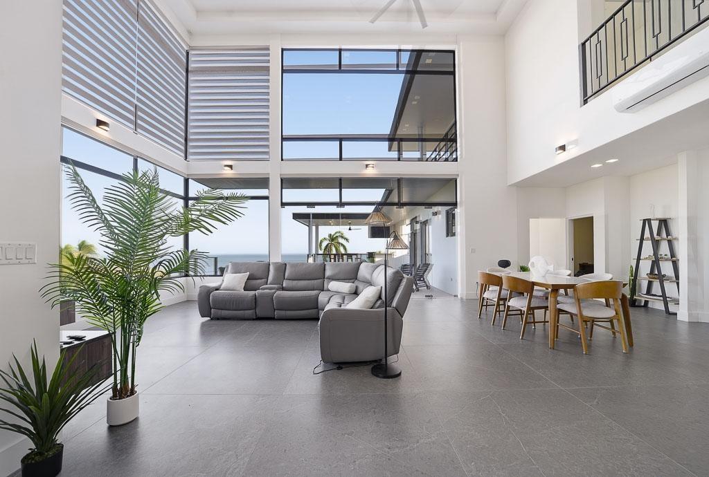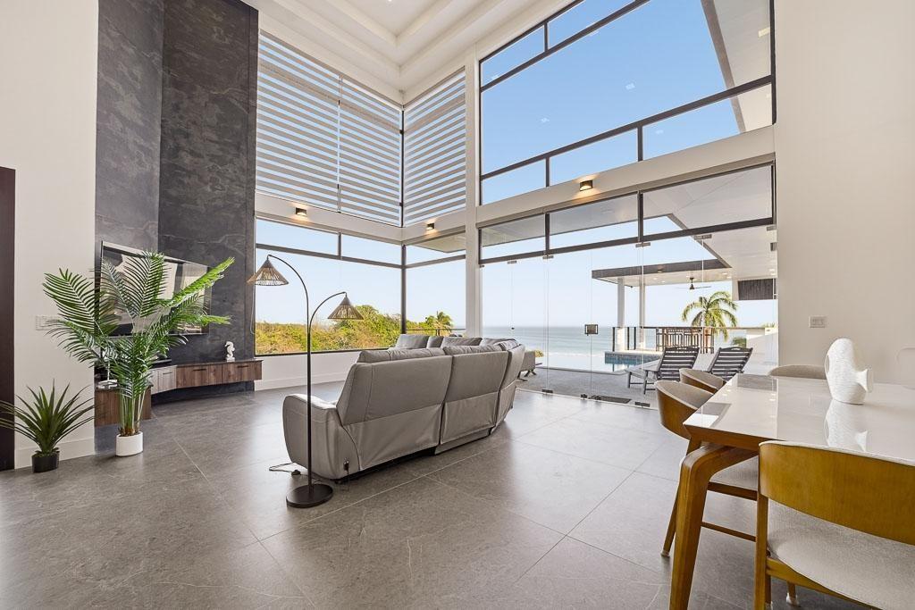 Located in the Wind Beach project in Los Destiladeros, minutes from Pedasi town, this modern residence sits on a 3,949 m² lot and captures unobstructed views over Rocky Point, one of the most consistent surf breaks in the area. The home is defined by its double-height living space, floor-to-ceiling glass, and seamless connection to the outdoor terrace and infinity-edge pool. 392 m² enclosed construction 3,949 m² lot (almost 1 acre) Views overlooking Rocky Point surf break Infinity-edge pool with outdoor terrace Double-height living and dining area Open kitchen with direct indoor-outdoor flow Private water well Solar power system installed The main living area opens completely to the exterior, creating a natural extension toward the pool and ocean-facing terrace. The layout balances open entertaining spaces with more private areas above, all designed to maximize light, airflow, and views. Positioned just minutes from Pedasí and within easy reach of Playa Venao and surrounding beaches, the property offers both accessibility and privacy. With its lot size, infrastructure, and orientation toward one of the region’s most sought-after surf breaks, this home is well suited for personal use, rental income, or a combination of both.