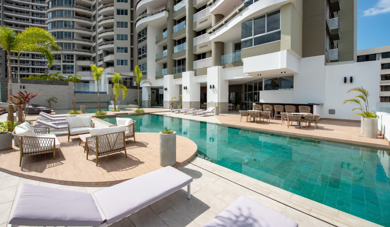 2 o más elevadores A/C Ascensores Balcón(es) Cerca del Tráfico Gimnasio Internet Fibra Óptica Línea blanca Línea Telefónica Parque Infantil Piscina Sala de estar/familiar Seguridad Sistema de Detección de Fuego Tanque de reserva de agua Televisión por Cable Walk-in closet Location