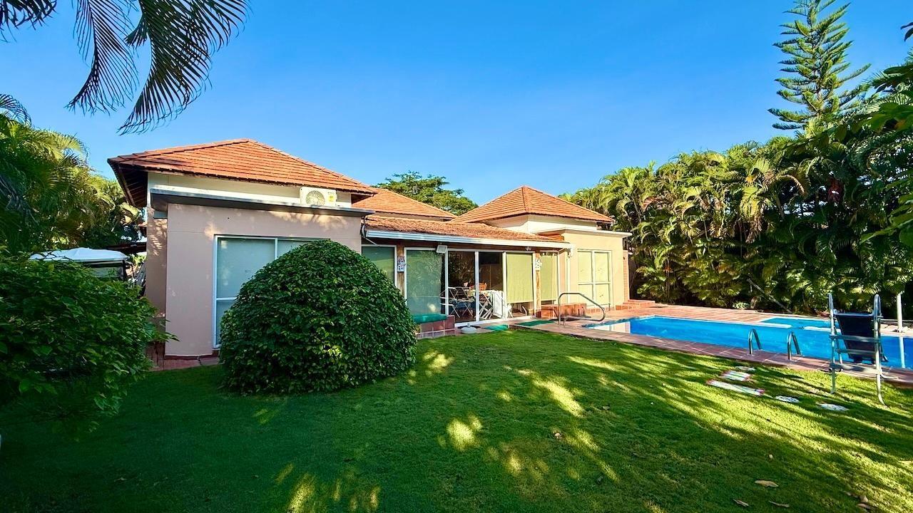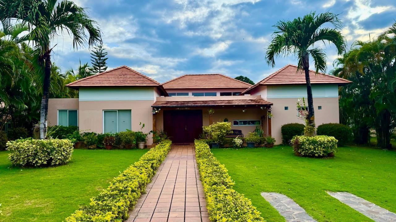 Enjoy ultimate luxury and tranquility in this beautiful single-family villa, perfectly located within the prestigious Costa Blanca Golf and Villas community. Ample Space This beautiful villa boasts 239 m2 of elegant living space, perfectly complemented by its expansive 963 m2 grounds. The interior features: 3 spacious bedrooms: each with its own bathroom, providing ample space and privacy for family and guests. Maid's Quarters: conveniently located for comfort and convenience. Generous living and dining areas: perfect for entertaining, with easy access to the outdoor social area. Living Room: an inviting space to relax and enjoy quality time with loved ones. Outdoor Oasis The villa's outdoor spaces are truly spectacular and feature: Private pool with Jacuzzi: rest and relax in sun-drenched surroundings. Beautiful Garden: Lush vegetation and meticulously manicured lawns create a serene environment, with direct access to the first hole of the golf course. Panoramic entrance: A grand entrance sets the tone for this stunning property. Golf Course Living: As a resident of Costa Blanca Golf and Villas, you'll enjoy exclusive access to the golf course, along with a wide range of community amenities. Imagine teeing off from your own garden or enjoying a leisurely stroll around the course. This villa offers the perfect combination of luxury, space, and tranquility, making it an ideal retreat for those seeking a relaxed and sophisticated lifestyle.