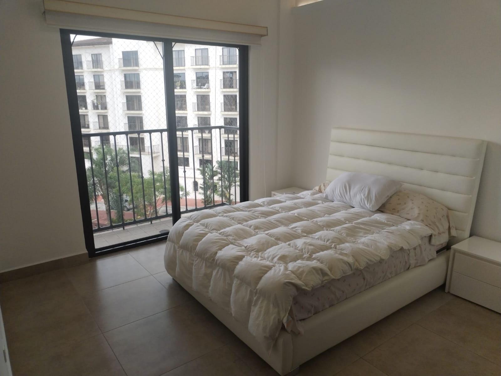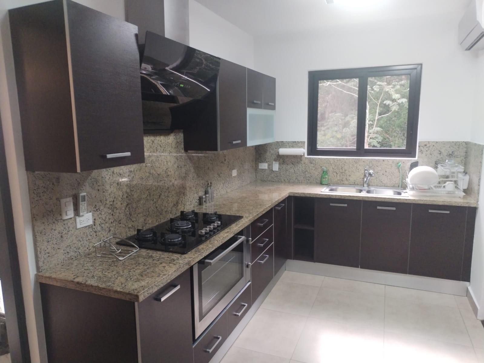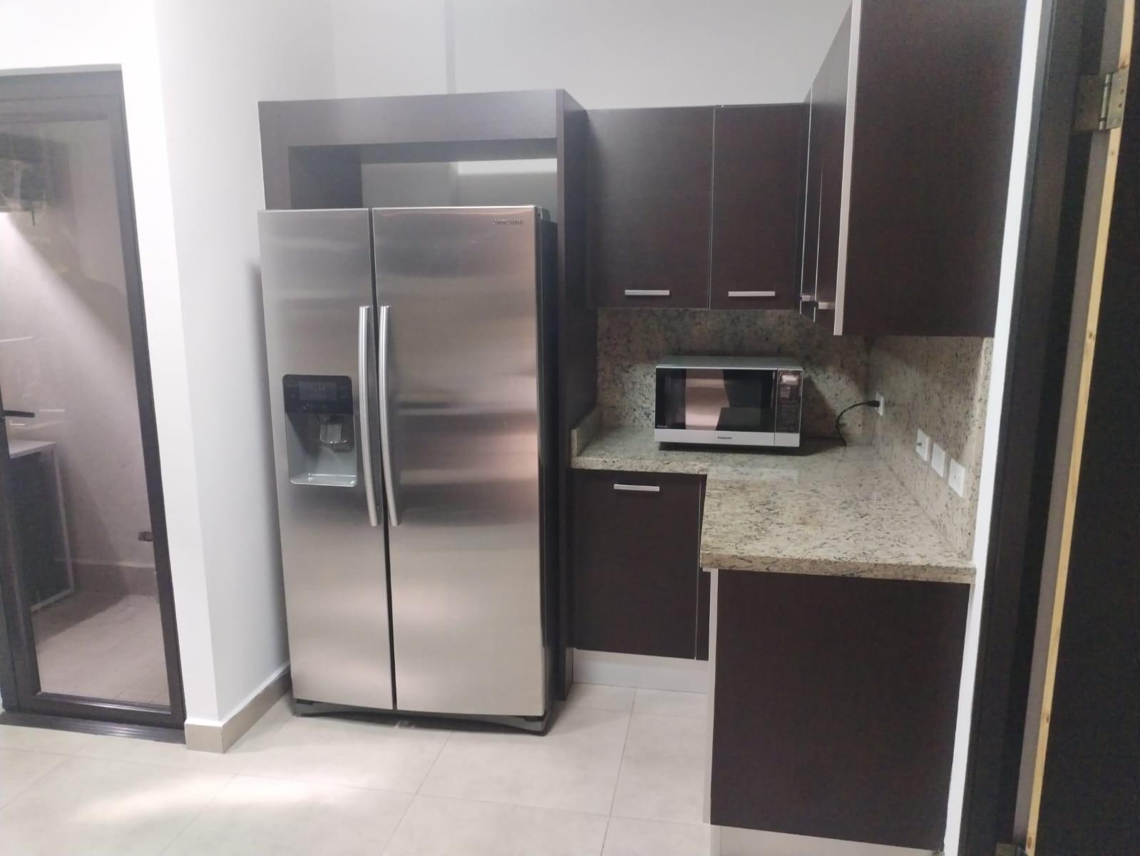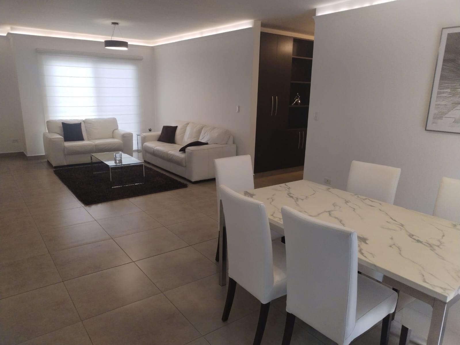 Features of the condominium:-Two hundred and two square meters.-Three (03) parking spaces.-Direct and indirect lighting (all areas with lamps).-All areas except kitchen with blinds.-All areas with air conditioning.-Garbage chute inside the condominium (in the air conditioning compressor area).-Three (3) bedrooms plus maid's room.-4 and a half bathrooms, all with wastebaskets.-Water heater.-Living room with 2 sofas, 2 tables and a rug.-6-seat dining room with large ornamental plant.-Family room (Den) with L-shaped sofa bed, side table with decoration, rug, shelf cabinet and TV.-Master bedroom with queen size bed, dressing table, bedside tables, full body mirror, walk-in closet.-Secondary bedroom with queen size bed, bedside tables, full body mirror behind the door, and small walk-in closet.-General Electric washing and drying center.-Ironing board and Black and Decker iron.-Kitchen area with built-in stove and oven, extractor, and refrigerator/freezer.-Linens, dishes, glasses, containers, pots, and cutlery.