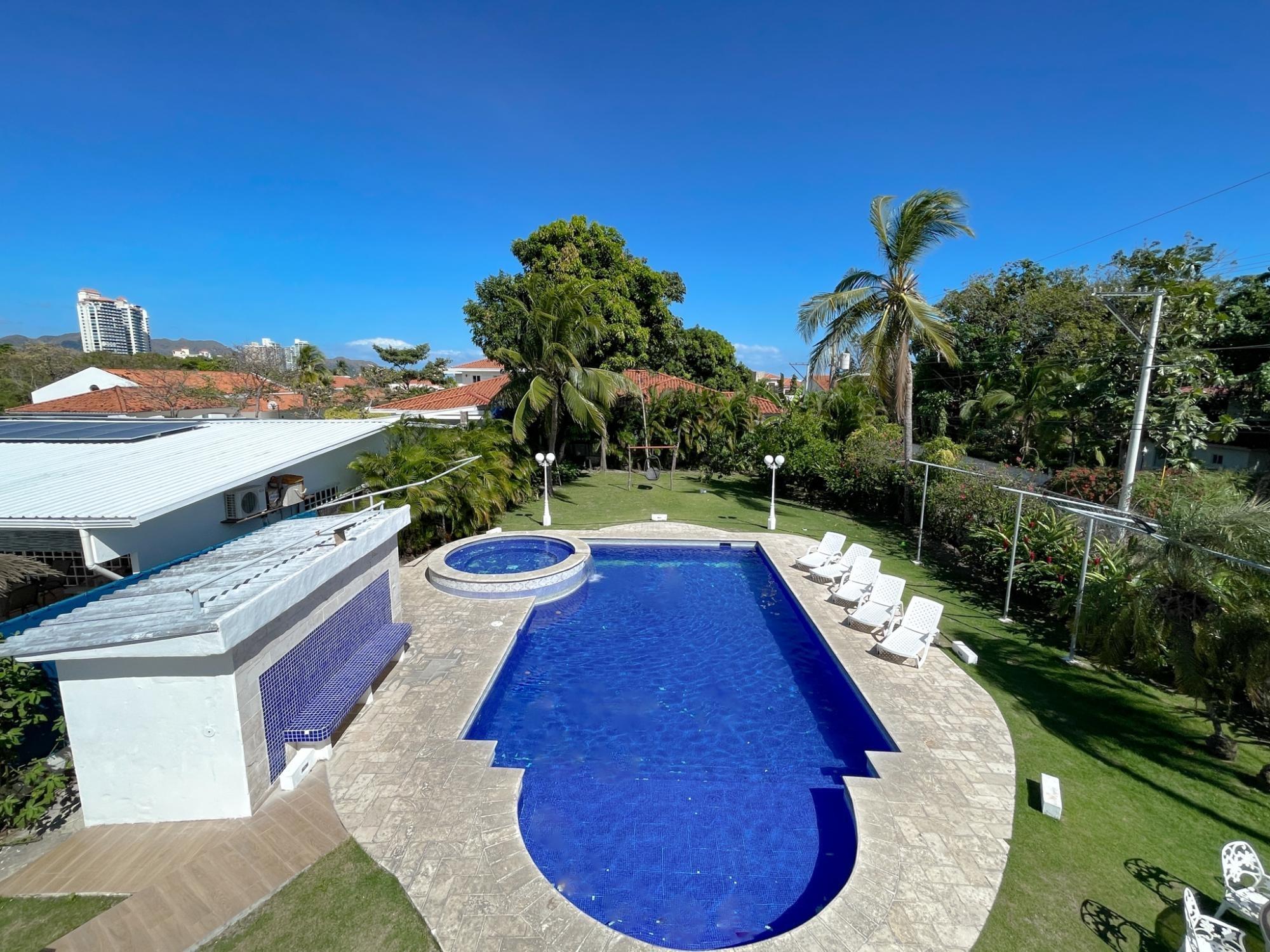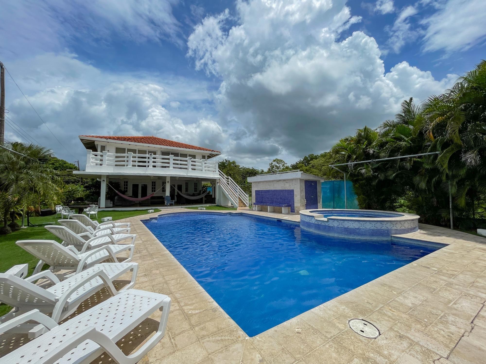 Beautiful house for sale in the best area of Coronado with 511.41 m2 of construction and 1080 m2 of land steps from the beach. The house has 2 levels distributed in 5 bedrooms, 3.5 bathrooms, large living/dining room with open kitchen and access to a large terrace on the second level, study, covered terraces with barbecue area, spectacular pool, jacuzzi for 10 people, green areas , maid's room and bathroom, 4 parking spaces and private caretaker's house. It also has fruit trees of lemon, mango, soursop, banana, papaya, avocado, star fruit, coconut, cactus and plants such as oregano, mastranto, coriander, rue, jasmine, cinnamon and more.