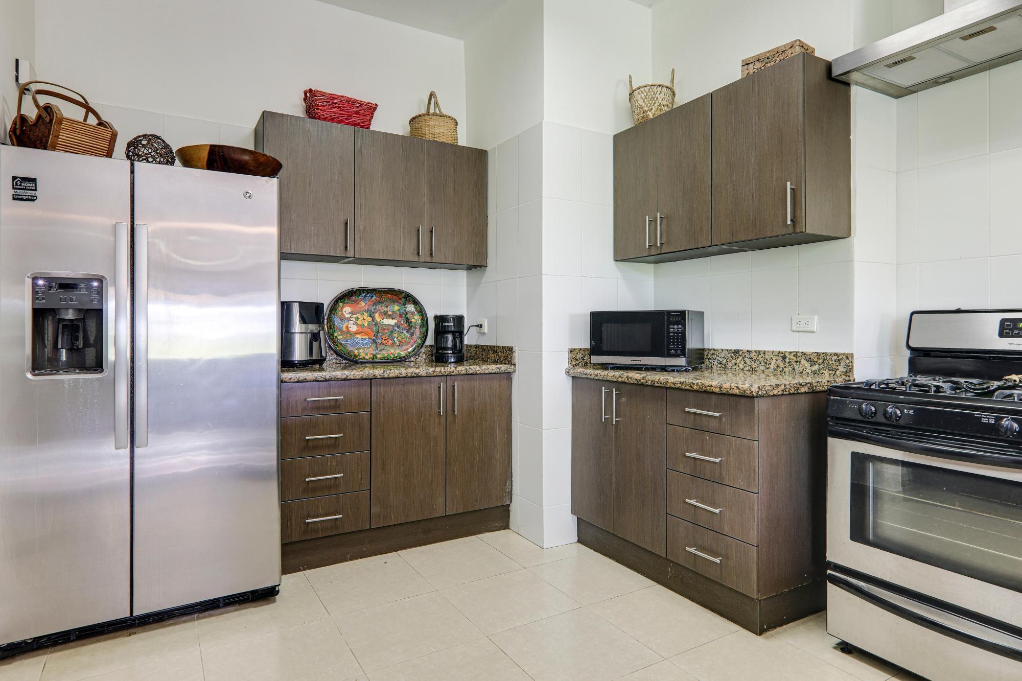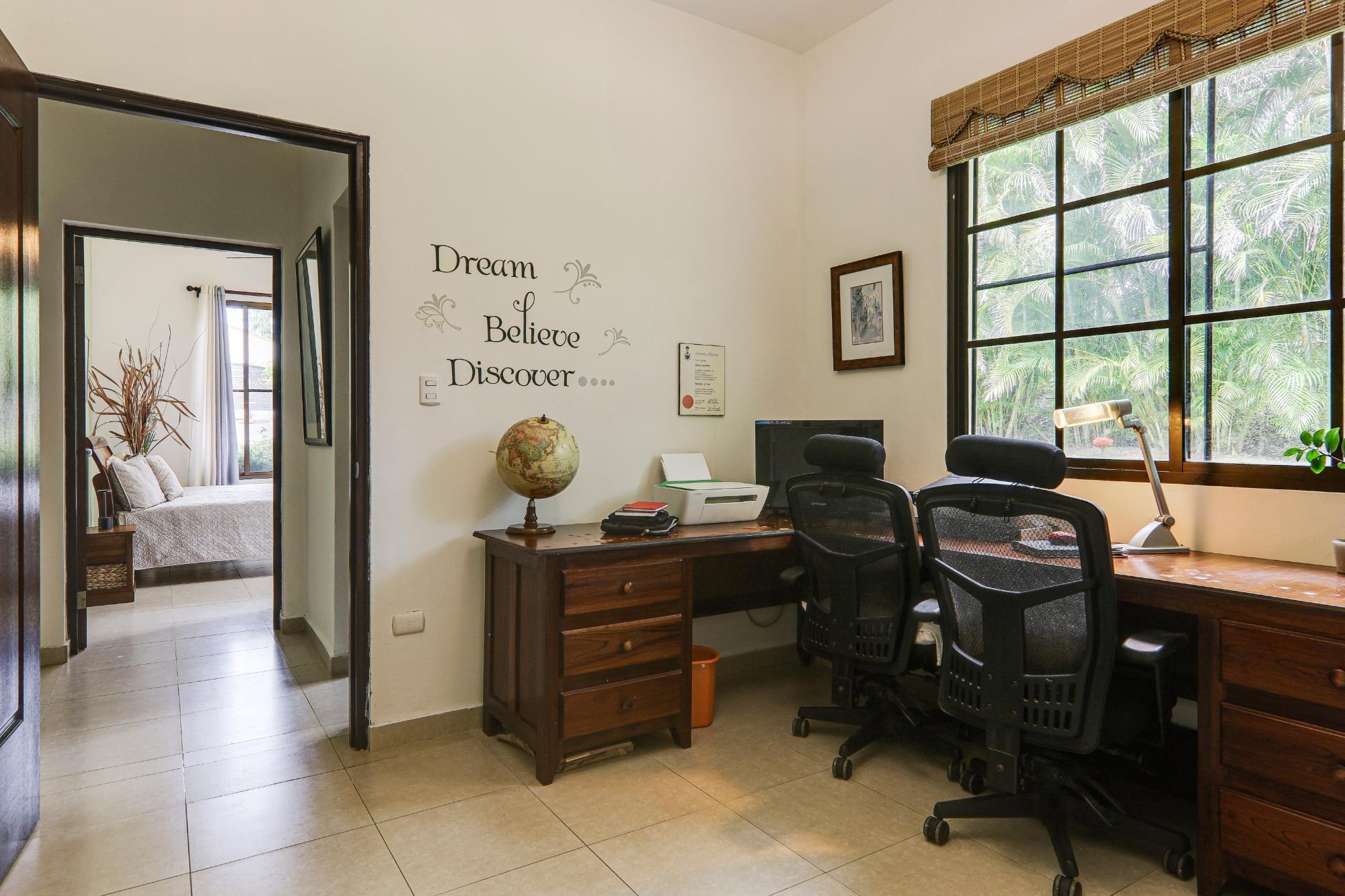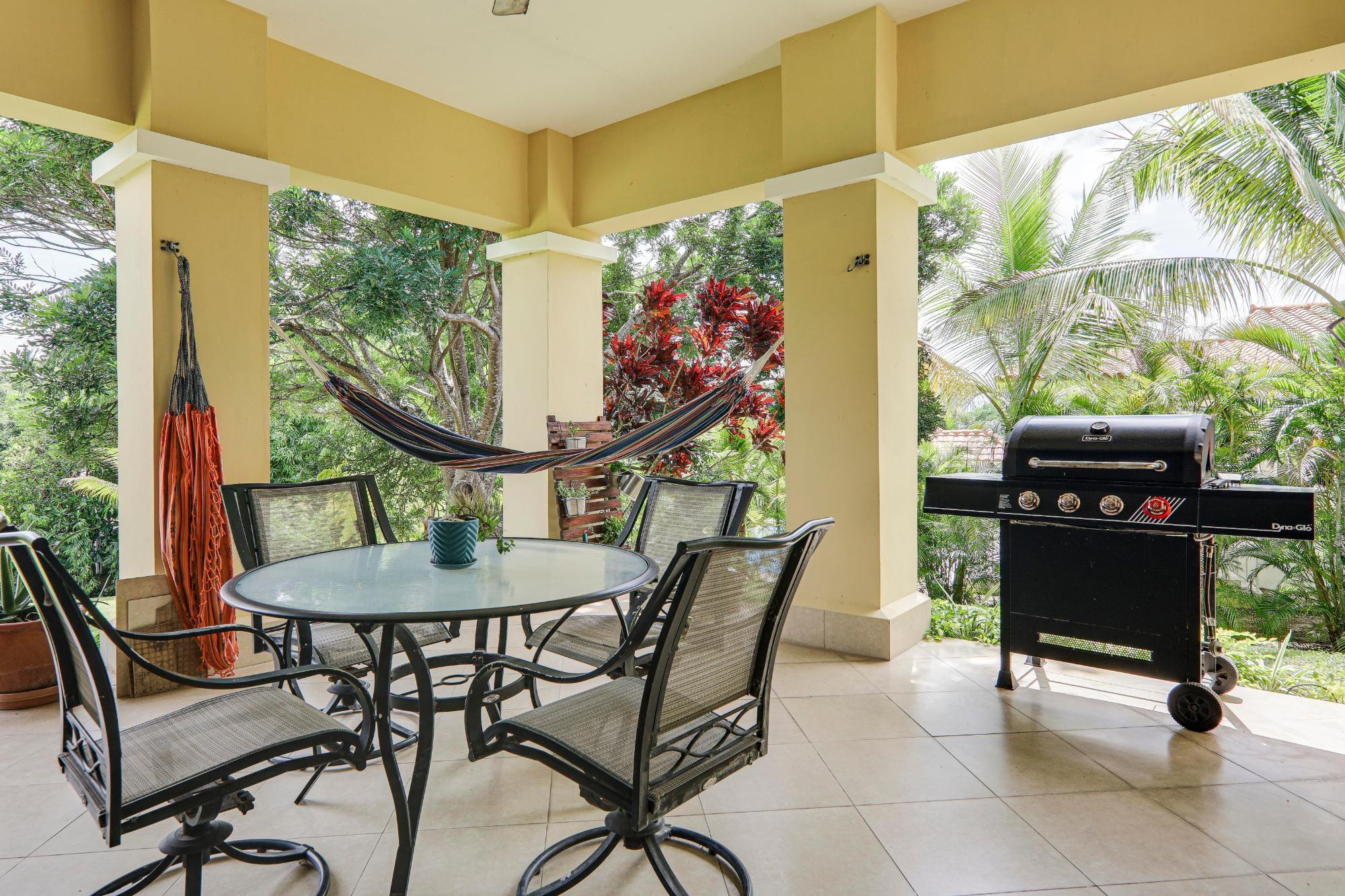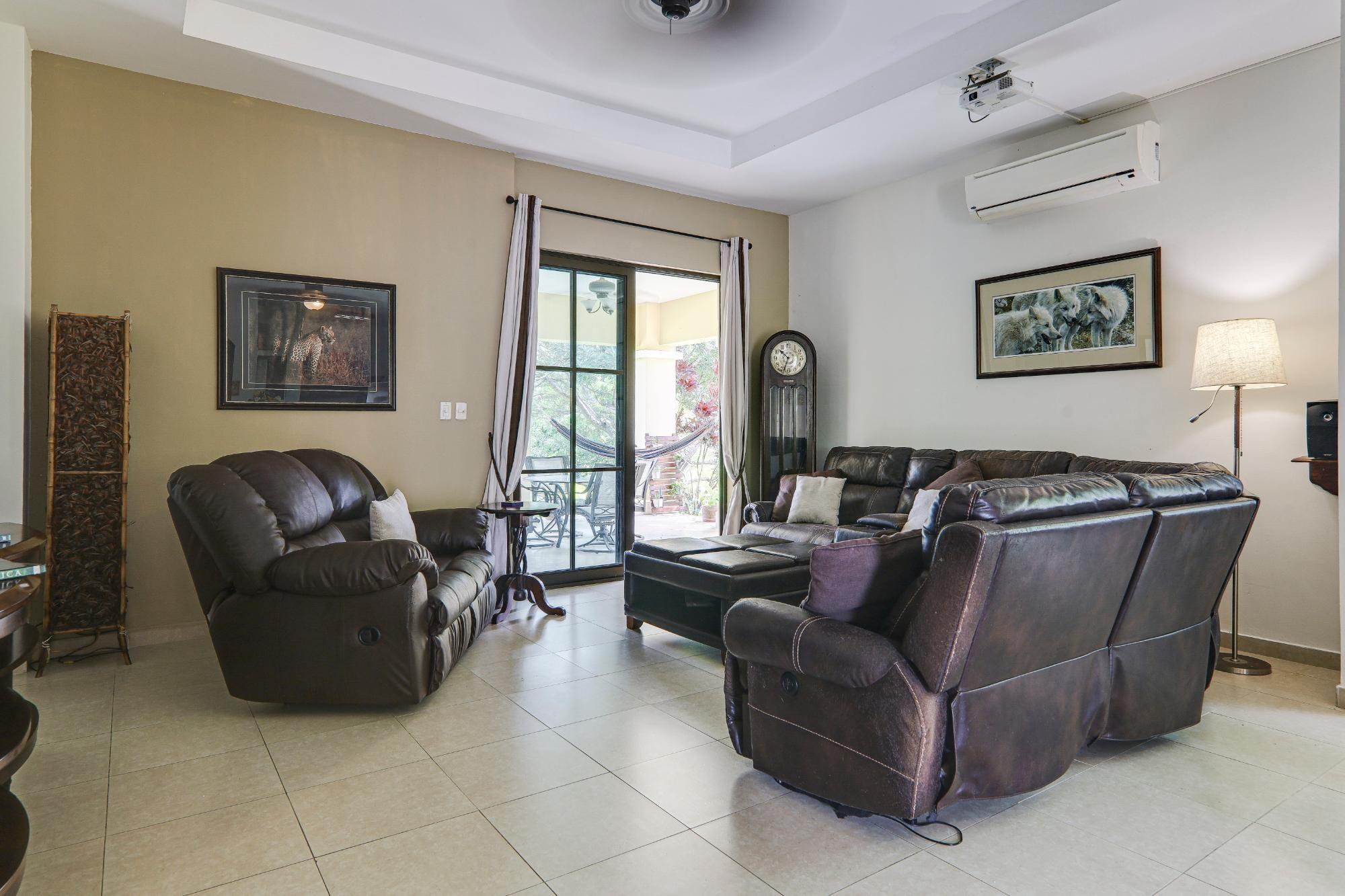 The pristine gated community of Hacienda Pacifica offers quality wide streets, underground infrastructure (water, electricity and fiber optic internet), plus phase 1 also offers a social area with a large pool, tennis and a gym. These are the features of this property: 3 bedrooms 2.5 bathrooms 1500 m2 of well-kept tropical land 243 m2 of total built area 216 m2 of gated area Comfortable open-concept interior Modern kitchen with gas stove and double fridge Breakfast bar Foyer-type entrance with security doors. Light colored tile floors throughout His and hers vanities in master bathroom Elegant bathrooms with soaking tubs Ample storage space Modern air conditioning in all rooms Ceiling fans in all rooms Window coverings Fiber optic internet and cable TV ready 2 car garage with automatic door and remote control Laundry room with washer and dryer Whole house gas water heater 600 gallon water reserve tank with pressure pump Terrace with hammocks and gas BBQ Mature flowers, plants and fruit trees: almond, coconut, moringa, noni, banana, papaya 2011 construction 20 year exemption from November 2011 No land tax due to low declared value of the land Maintenance fees of $190/m Sellers will consider rent to own or similar PH Hacienda Pacifica features: Outdoor social area for family gatherings Tennis courts Fitness center Huge pool with restrooms Hiking trails and Private waterfall for bathing Garbage collection twice a week Underground infrastructure for electricity, water and fiber optic internet Security checkpoint and patrols 24 hours a day, 365 days a year Maintenance fees of $190/m