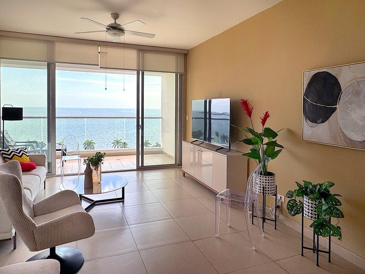 ¿QUÉ TE HACE FELIZ? ¿Te gusta jugar al tenis, nadar, correr, o prefieres relajarte en tu amplio balcón frente al mar, contemplando la puesta de sol, con una copa en la mano? Esta es tu gran oportunidad. Este apartamento finamente amoblado ha sido totalmente remodelado y ofrece tres nuevos aires Split Inverter y tres televisores. RIVAGE TOWER es uno de los pocos edificios que ofrece tres áreas sociales, una cancha de tenis, y nada menos que tres piscinas, además de un gimnasio de nivel profesional, ¡con sauna, baño turco y cancha de squash! Para trotar, correr, andar en bicicleta, o sencillamente pasear, todo lo que necesitas hacer es cruzar la prestigiosa Avenida Balboa donde te espera la famosa CINTA COSTERA. Dicen que la felicidad no se puede comprar, pero se puede alquilar. Esta propiedad está listada en el MLS (Multiple Listing Service), asegurando una amplia exposición a los agentes idóneos (50/50 split). Visitas privadas están a disposición de las partes calificadas.