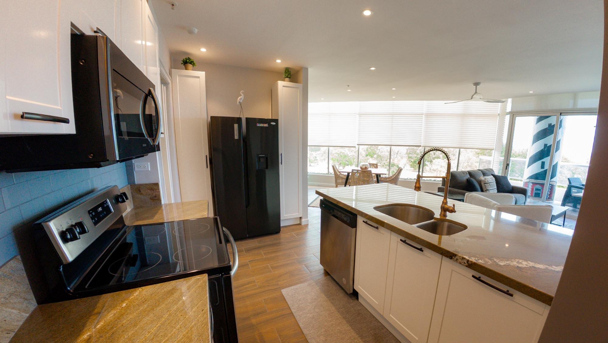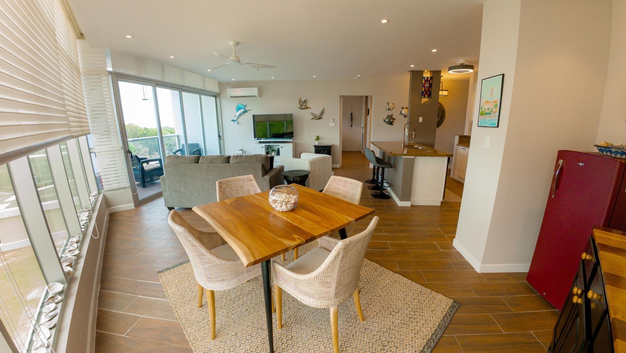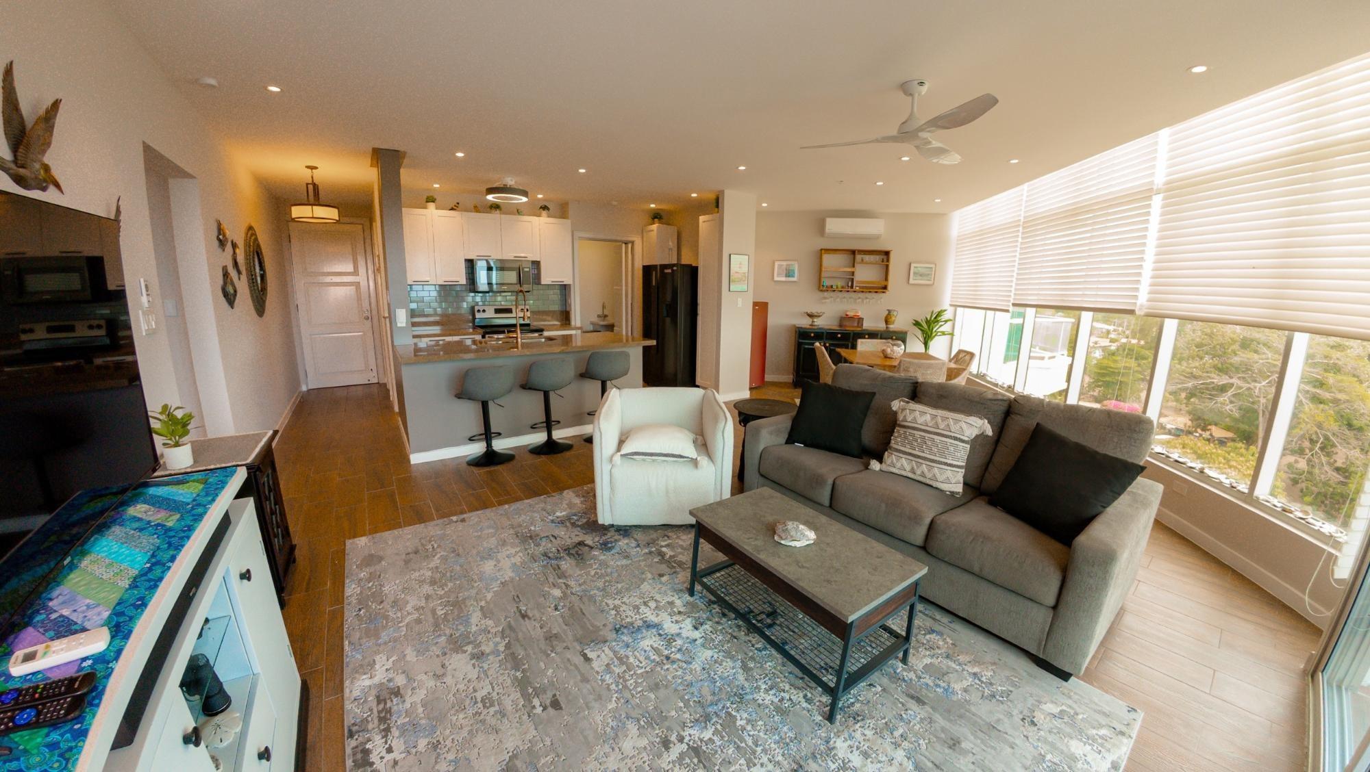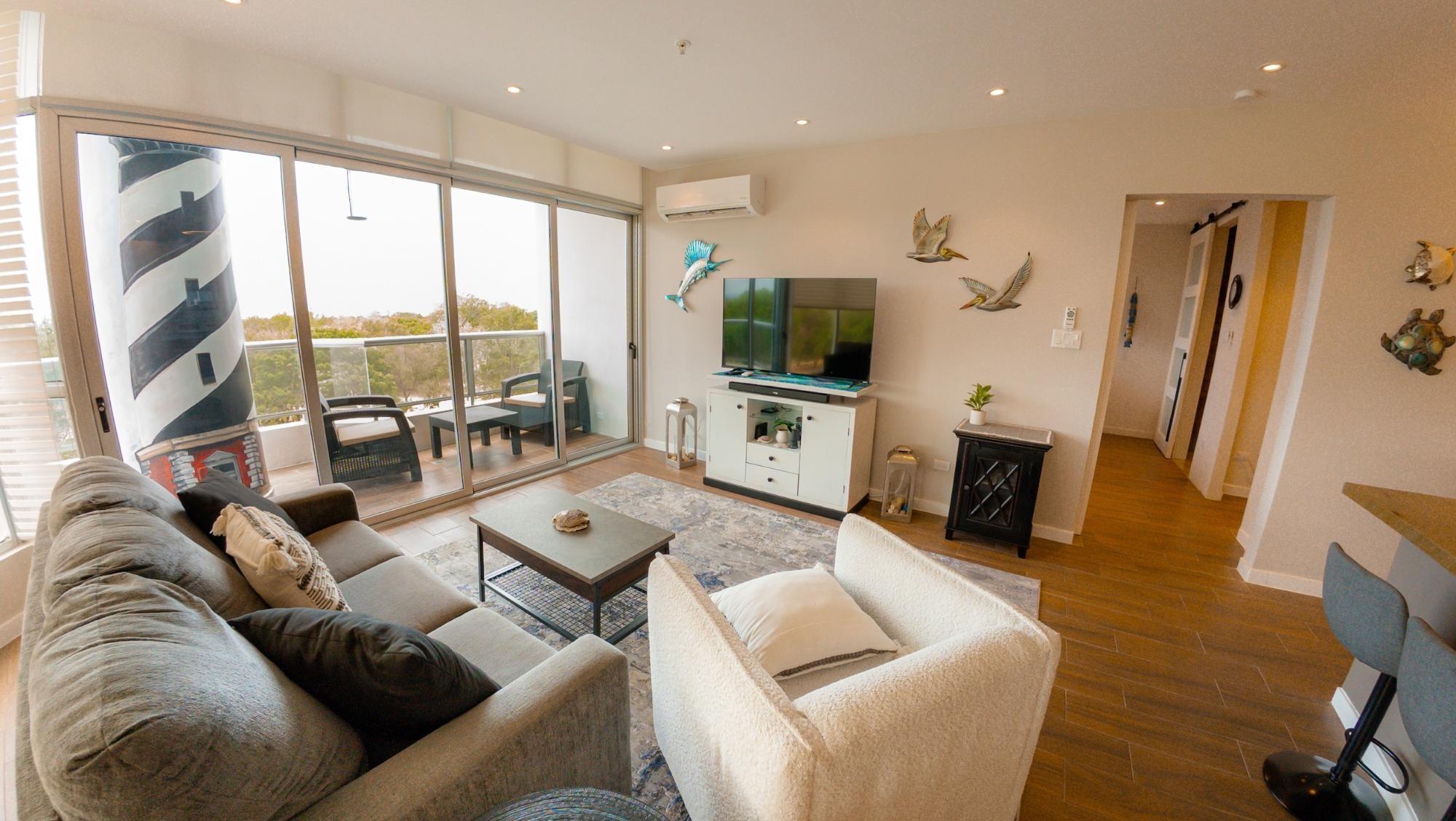 Ubicada en el octavo piso, esta elegante residencia de un dormitorio ofrece una excepcional sensación de privacidad y altura, con vistas panorámicas al campo de golf. Diseñada para una vida interior-exterior sin esfuerzo, la vivienda cuenta con dos balcones privados: uno que se extiende desde la sala de estar principal y otro desde el dormitorio, creando dos espacios distintos para relajarse, recibir invitados o disfrutar del entorno costero. Las líneas arquitectónicas depuradas, los ventanales de piso a techo y una distribución cuidadosamente diseñada de 110 m² le otorgan al espacio una luminosidad y modernidad excepcionales, mientras que la espaciosa suite principal, con su propio balcón y baño privado, ofrece una experiencia tranquila y relajante.