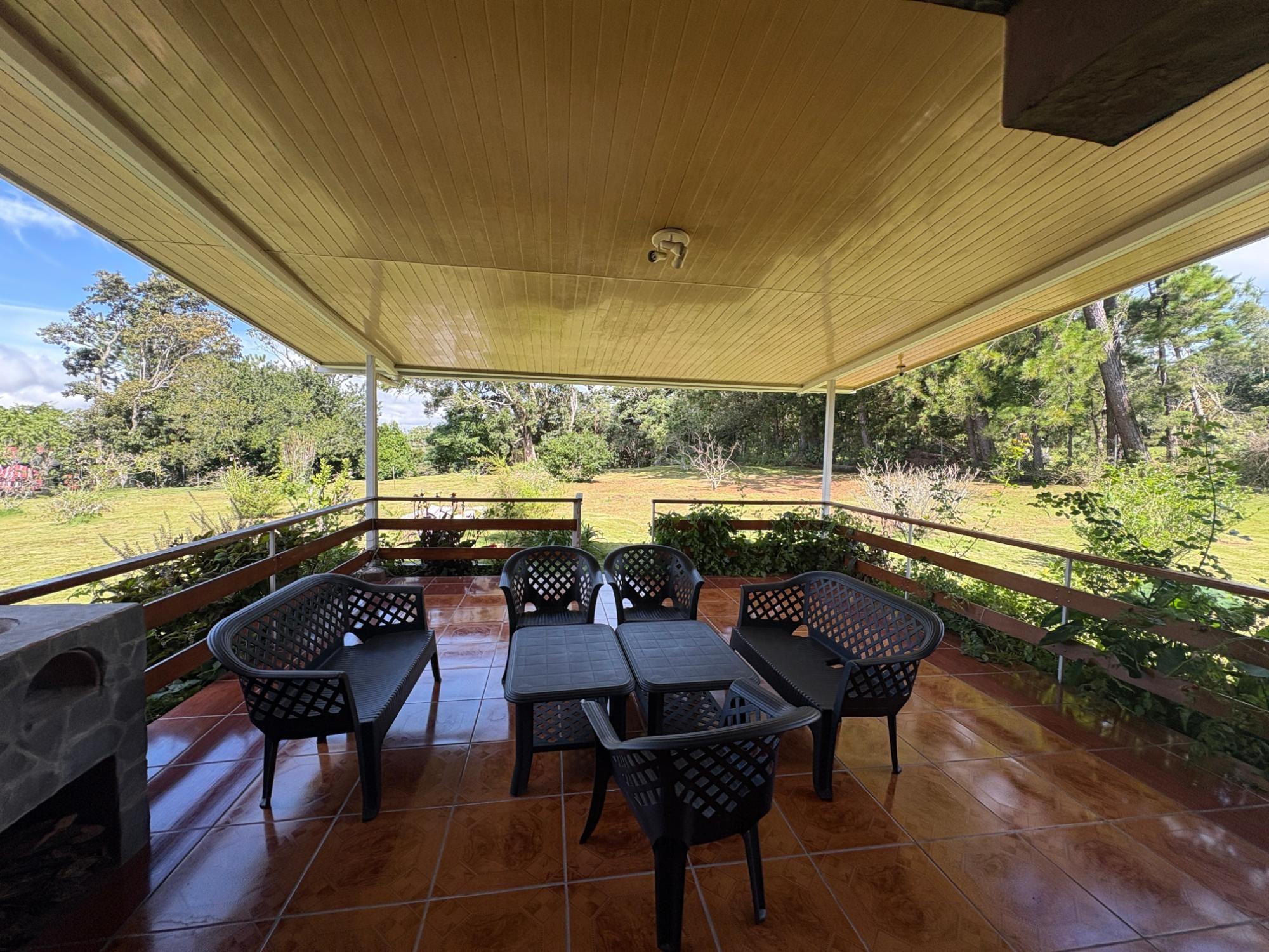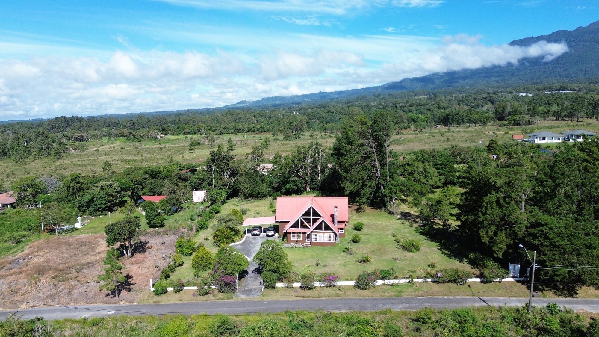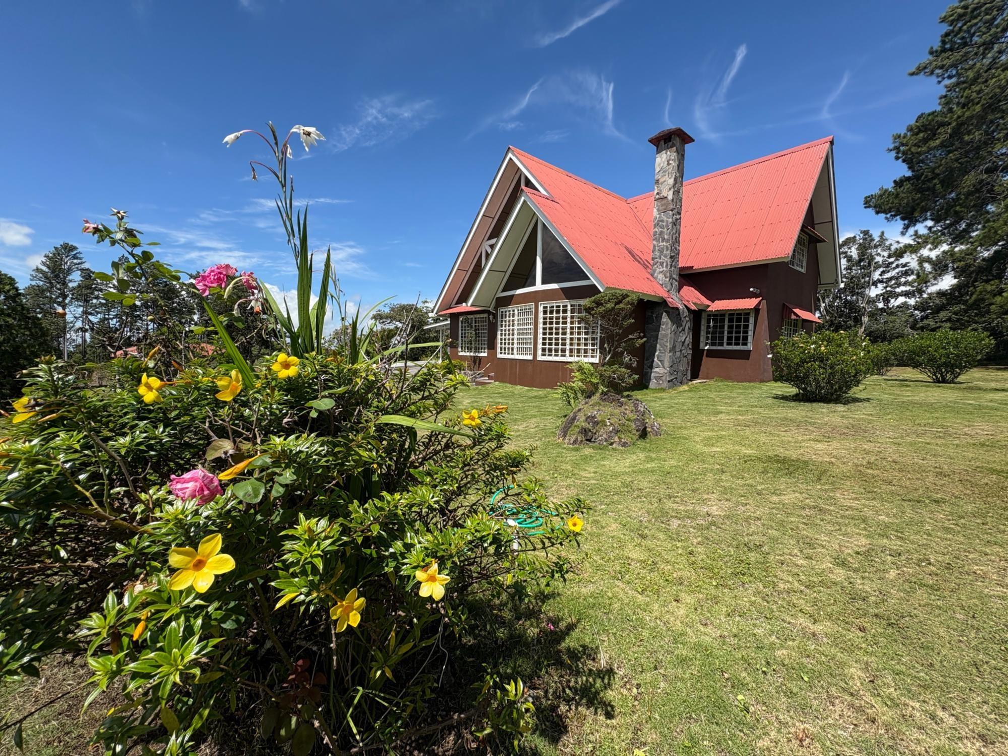 Esta propiedad en Alto Dorado, Alto Boquete, se encuentra en un terreno plano de 4,115 m² y está completamente cercada. Ubicada a solo 12 minutos del centro de Boquete, la casa ofrece privacidad, espacio y un entorno pintoresco con vistas a las montañas. Construcción sólida e interior luminoso. La casa principal cuenta con 3 dormitorios y 3 baños. La casa presenta una distribución espaciosa con altos techos abovedados en la sala de estar, gracias a su diseño de techo a dos aguas, que realza la sensación de espacio y luz. Grandes ventanales ofrecen vistas a las montañas y crean un ambiente tranquilo en toda la casa. Las áreas abiertas de sala de estar y comedor añaden calidez y carácter al espacio. Cocina e inclusiones: La cocina es espaciosa, con gabinetes de madera y encimeras de azulejos rojos. La propiedad se vende con electrodomésticos principales, que incluyen refrigerador, estufa y lavadora. Terraza cubierta y disfrute al aire libre: Una terraza cubierta ofrece un espacio cómodo para disfrutar del clima de Boquete. Este espacio es ideal para comidas informales o para pasar tiempo al aire libre con vistas a los jardines, árboles y patio de la propiedad. Terreno productivo con árboles frutales y arroyo estacional. El lote incluye una variedad de árboles frutales, como anacardos (marañón curazao), durazneros y perales jóvenes, y un arroyo estacional que atraviesa la parte trasera de la propiedad. El terreno está bien mantenido, es abierto y apto para jardinería, plantaciones adicionales o incluso para futuras construcciones. Estacionamiento y acceso: Hay una cochera cubierta con espacio para dos vehículos y una amplia entrada. La casa se encuentra en una calle tranquila dentro de una zona residencial de Alto Dorado, con fácil acceso a la carretera principal que lleva al pueblo.