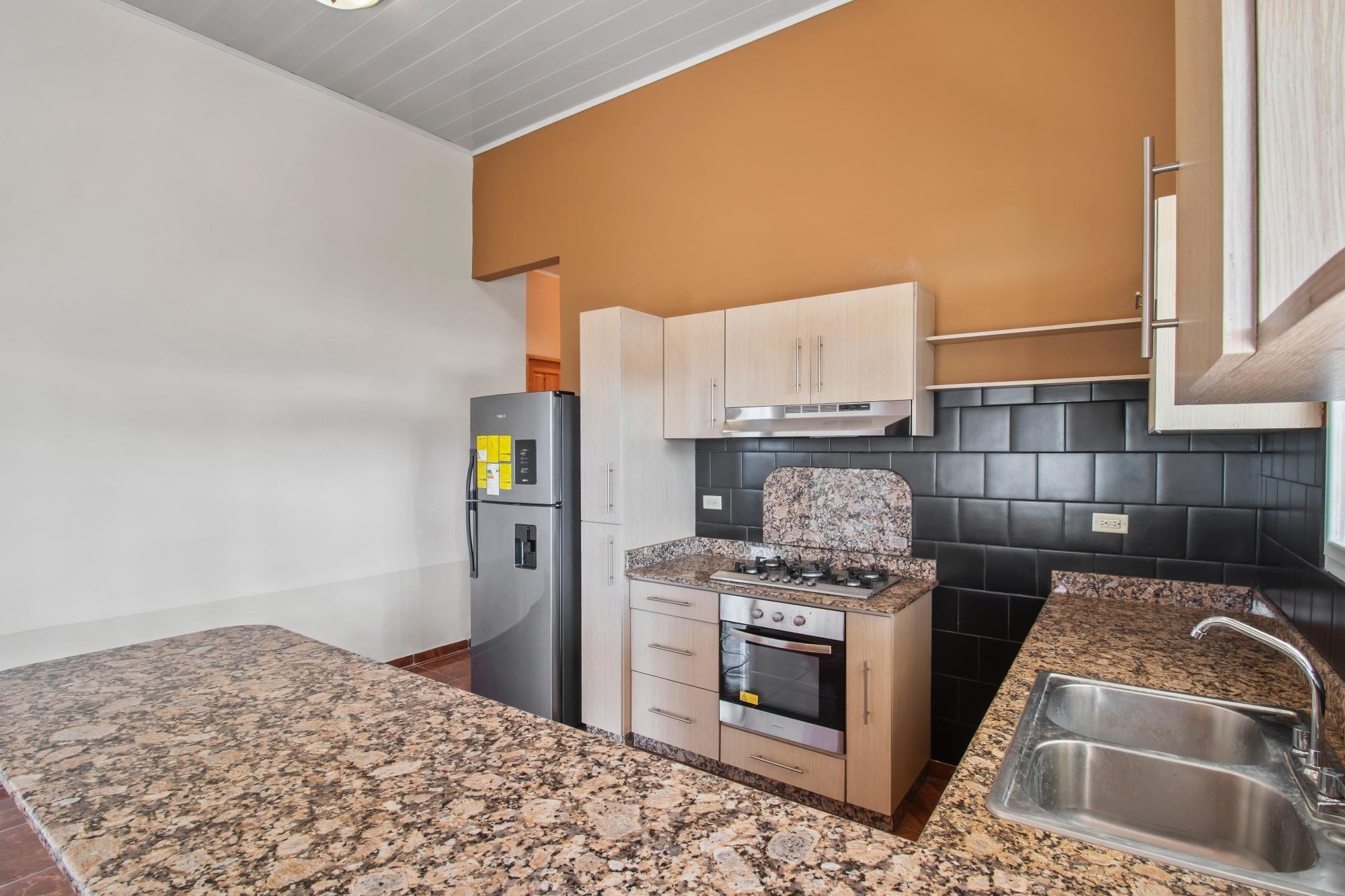Ubicada en una tranquila y consolidada zona residencial de Alto Boquete, esta casa de diseño impecable ofrece comodidad, funcionalidad y espacios versátiles en un terreno de 530 m², con aproximadamente 187 m² de construcción. La casa cuenta con tres dormitorios y dos baños completos. El dormitorio principal incluye baño privado y vestidor, mientras que los otros dos dormitorios comparten un baño completo, lo que proporciona una distribución práctica y equilibrada, ideal para familias o para recibir invitados. Una característica destacada de la casa es el loft, al que se accede por una escalera de madera maciza. Este versátil espacio puede utilizarse como oficina en casa, zona de yoga o meditación, estudio creativo, loft de lectura o como cuarto dormitorio opcional, según las necesidades del comprador. El interior destaca por sus techos altos, detalles de madera vista y una distribución abierta y espaciosa, creando un ambiente cálido y acogedor en las áreas principales. La cocina abierta está equipada con encimeras de granito, amplios gabinetes e incluye refrigerador y estufa, que se conectan a la perfección con la sala de estar y el comedor. Características adicionales: acceso a internet de fibra óptica, ideal para teletrabajo o streaming, sistema de agua caliente, área de lavandería funcional, porche cubierto y espacio exterior, patio totalmente utilizable con espacio para jardinería o mesas al aire libre. La propiedad se encuentra en Alto Boquete, una atractiva zona residencial conocida por su tranquilidad, a la vez que se encuentra convenientemente cerca del pueblo de Boquete, escuelas, supermercados y servicios esenciales. Esta casa es ideal para compradores que buscan un estilo de vida tranquilo, conectividad moderna, espacios interiores adaptables y una propiedad bien ubicada.