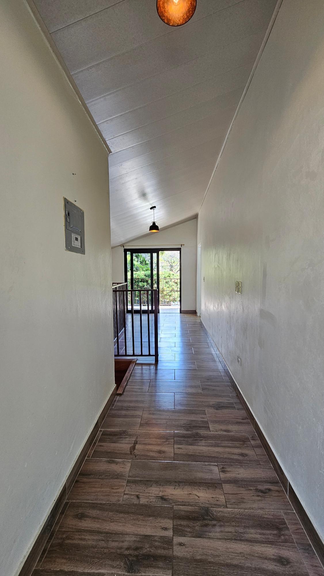 Boquete Panama Parkside Home ofrece una oportunidad única para vivir o gestionar un negocio en una ubicación privilegiada en el centro de la ciudad. Ubicada justo enfrente de un encantador parque urbano con fuentes y patos, la propiedad combina un entorno tranquilo con la comodidad de estar a poca distancia de restaurantes, tiendas y servicios. Esta casa de dos plantas está diseñada para una cómoda vida residencial, a la vez que ofrece flexibilidad para posibilidades comerciales o de uso mixto. La planta principal cuenta con una acogedora sala de estar, comedor y una cocina bien equipada, ideal para el día a día o el entretenimiento. Un dormitorio de invitados y un baño completo en la primera planta ofrecen comodidad para visitas o familiares. La casa también incluye una lavandería y un patio trasero cercado con césped, creando un espacio al aire libre para relajarse, cultivar un huerto o jugar. En la planta superior, la segunda planta amplía la sala de estar con un amplio rellano y puertas corredizas de vidrio que se abren a un patio cubierto con vistas al parque de la biblioteca. Este espacio versátil puede funcionar como oficina, sala de estar o zona de estar adicional. La planta superior también incluye una suite principal con vestidor y baño en suite, un tercer dormitorio y un baño completo adicional. Un segundo patio cubierto en forma de A en la parte trasera de la casa ofrece otro refugio privado al aire libre. Otras características incluyen estacionamiento para dos vehículos, sistema de agua caliente a demanda y un tanque de reserva de agua de 1000 litros.