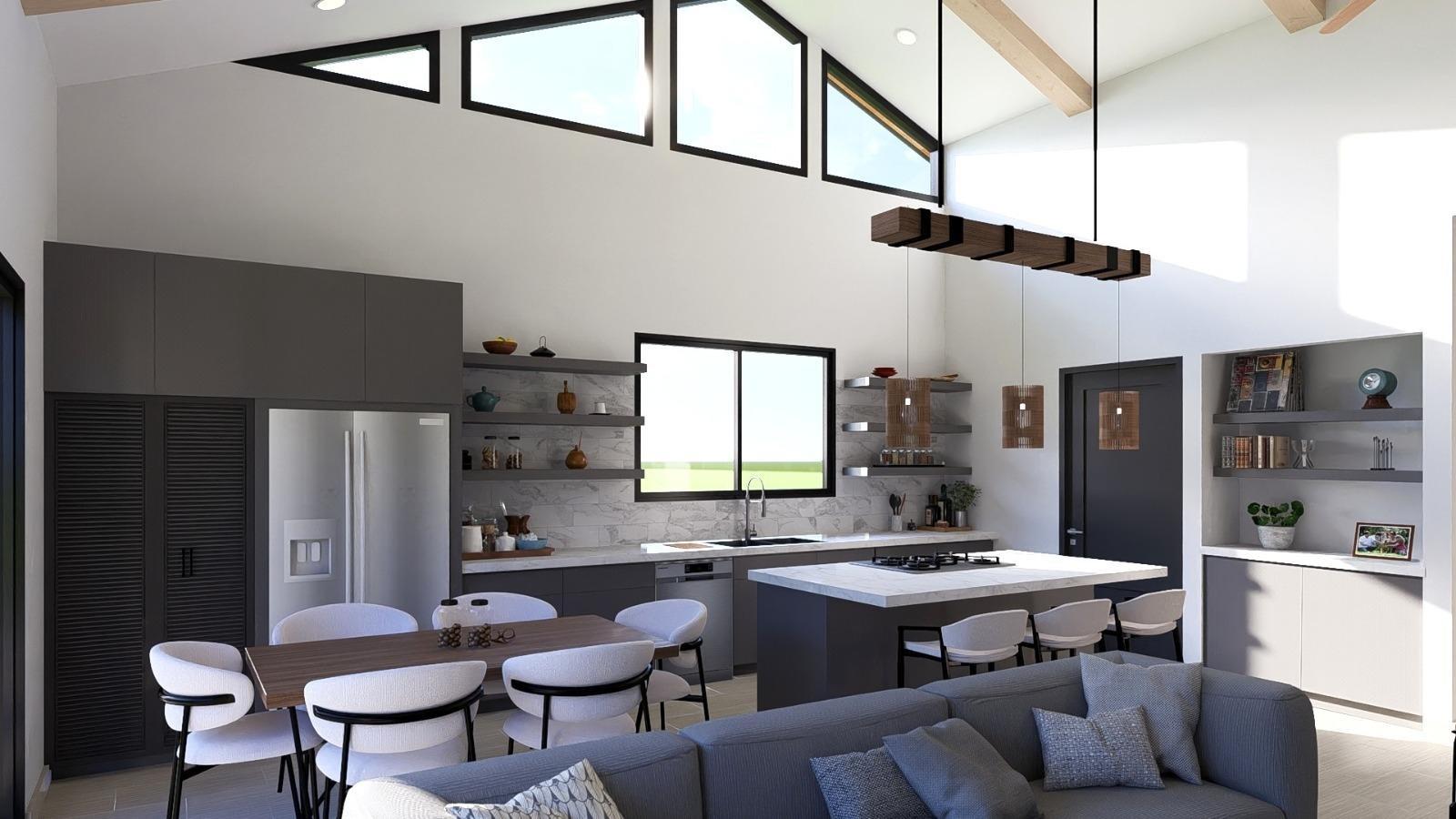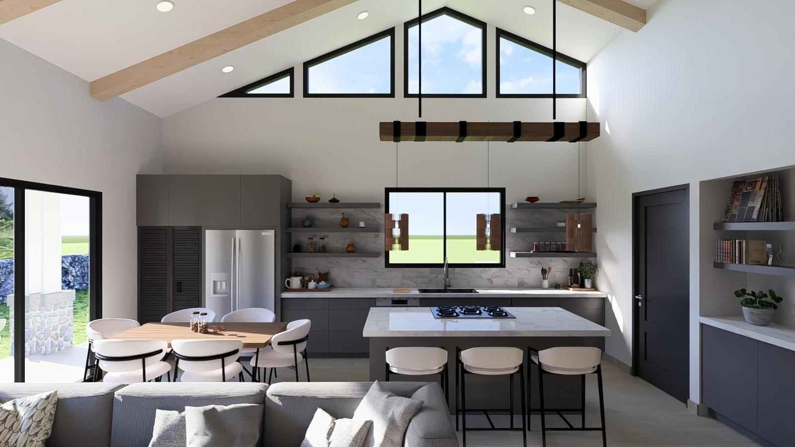 Espectacular casa moderna en venta en Alto Boquete, ubicada en el exclusivo proyecto Valle Boquete Canyon, una de las pocas zonas que aún ofrece vistas panorámicas hacia David, el Océano Pacífico y el Volcán Barú. Construida sobre un lote de 601 m², esta residencia de diseño contemporáneo cuenta con 163.45 m² de construcción inteligentemente distribuidos en una sola planta. La propiedad ofrece 3 recámaras, 2 baños completos y medio baño de visitas, ideal para quienes buscan comodidad, funcionalidad y elegancia en un entorno natural privilegiado. El área social es el punto focal de la vivienda, con techos altos tipo catedral y vigas expuestas que aportan amplitud y carácter arquitectónico. Una imponente pared de piedra decorativa y amplias puertas corredizas de vidrio permiten la entrada de abundante luz natural y enmarcan las impresionantes vistas al cañón. La terraza techada conecta perfectamente el interior con el exterior, creando un espacio ideal para disfrutar del clima fresco de Boquete durante todo el año. La cocina de concepto abierto incluye isla central con desayunador, sobres de granito, amplia despensa y excelente distribución para la vida diaria. Además, la propiedad cuenta con lavandería cerrada y estacionamiento techado para dos vehículos. La recámara principal dispone de puertas corredizas de gran tamaño que se abren hacia el jardín y las vistas, así como baño privado con doble lavamanos. El sistema de tuberías PEX para agua y gas brinda mayor durabilidad y eficiencia. Desarrollada por el mismo equipo detrás del exitoso proyecto Valle Boquete (23 viviendas totalmente vendidas), esta propiedad representa una excelente oportunidad tanto para residencia permanente como para inversión a largo plazo, en una ubicación donde el inventario con vistas reales al cañón y al océano es cada vez más limitado. Ubicada en una zona residencial tranquila con acceso mejorado, esta casa combina diseño moderno, vistas privilegiadas y alto potencial de valorización en uno de los mercados más atractivos de Chiriquí.