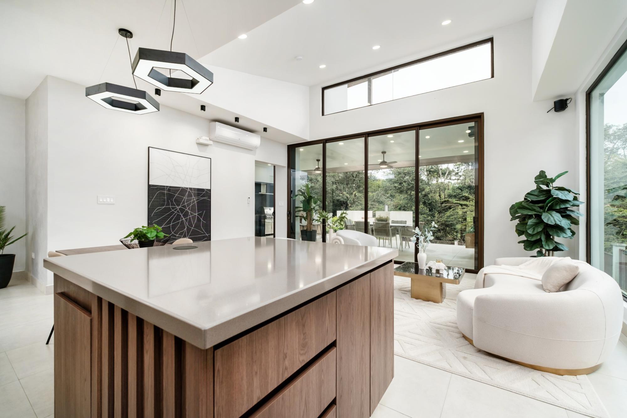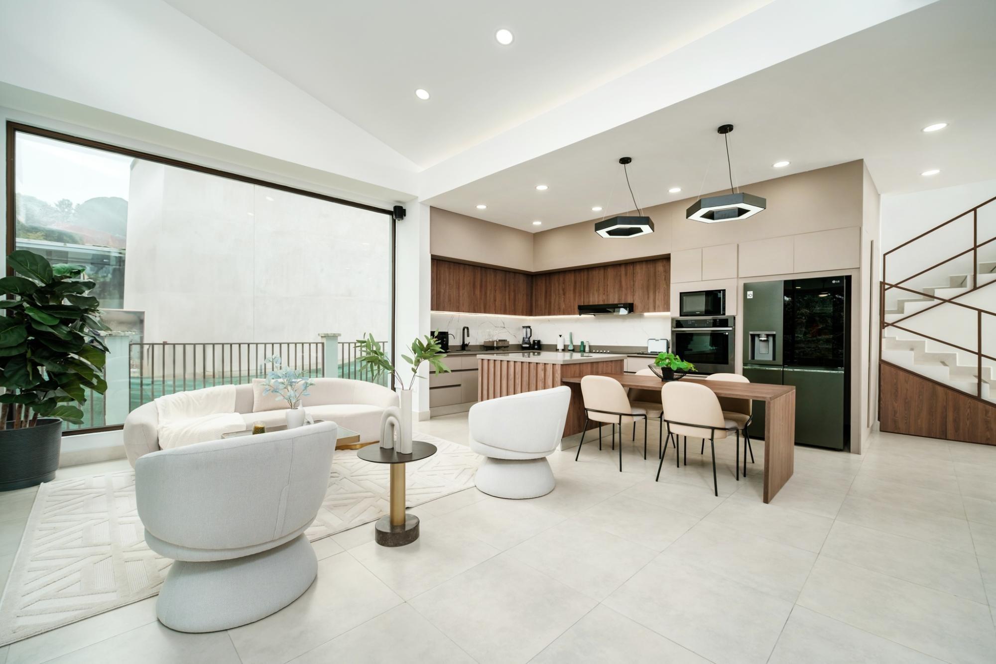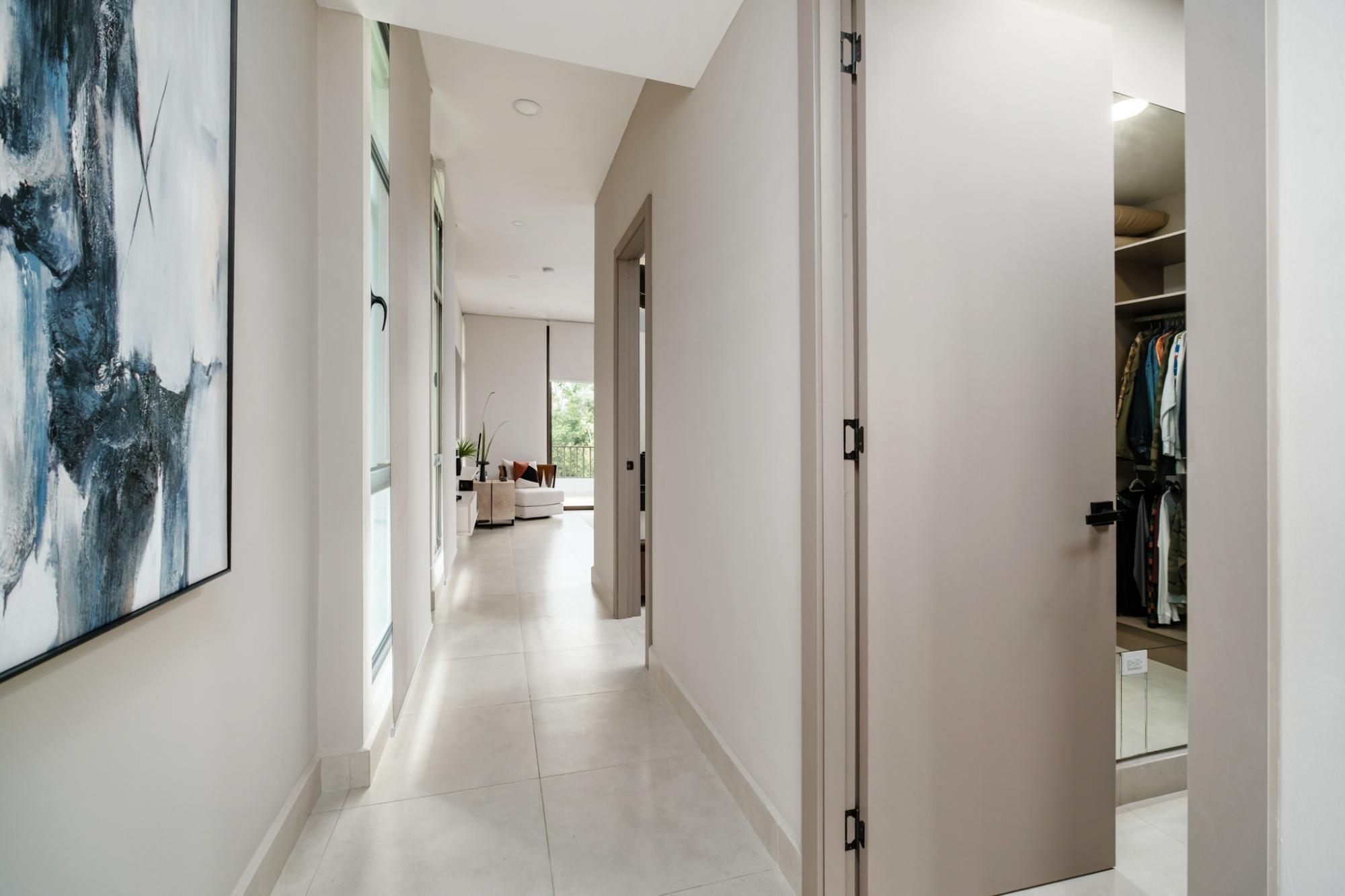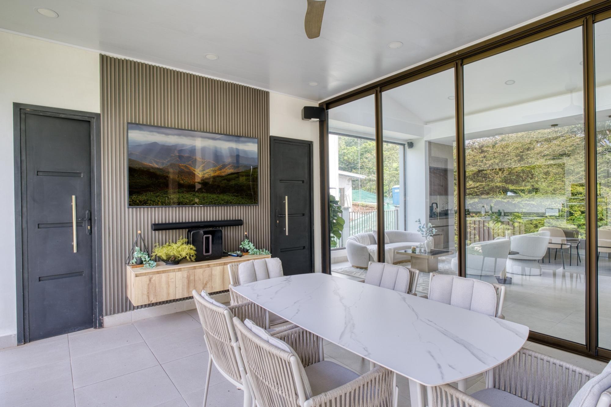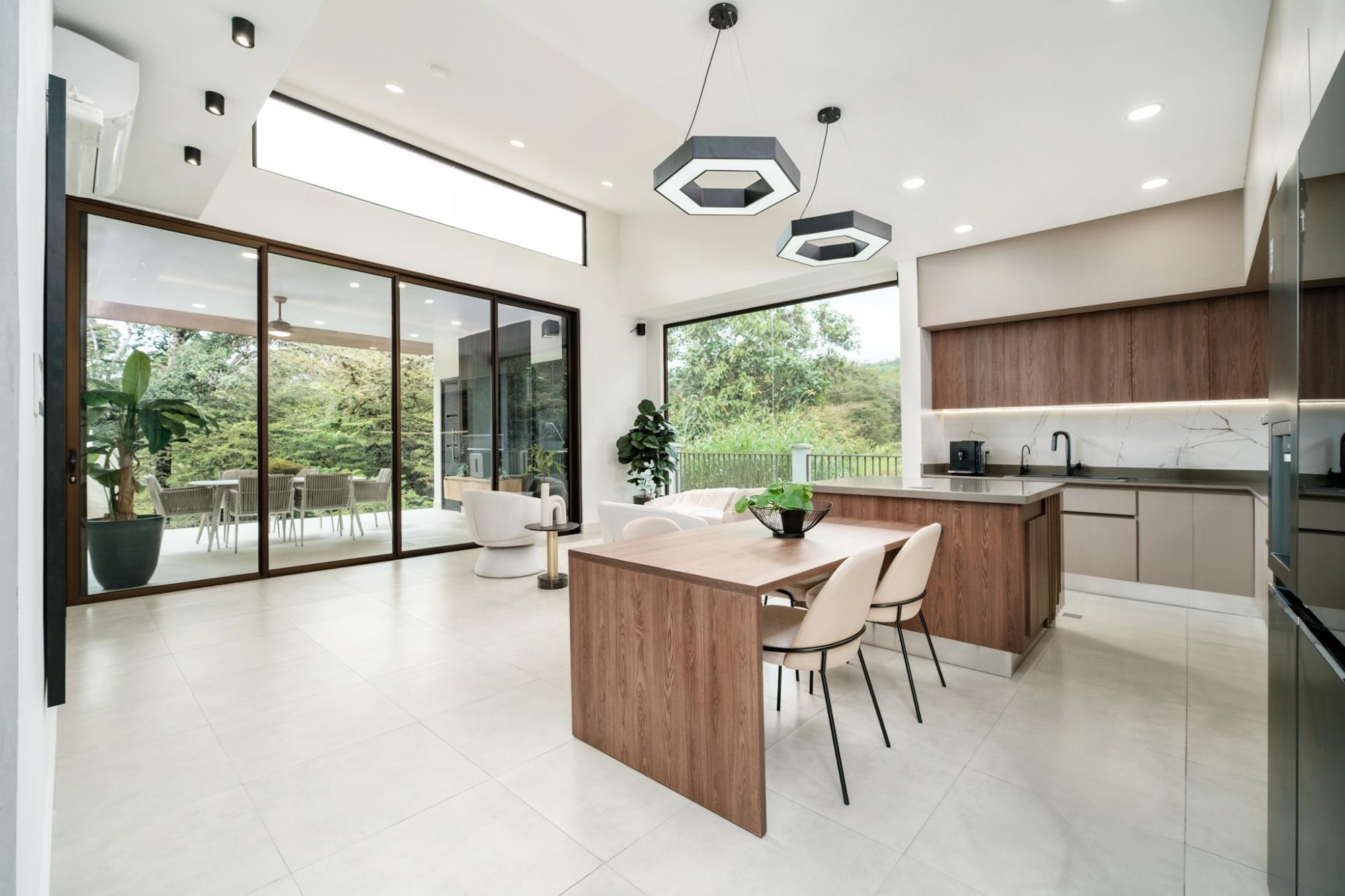 Esta impresionante casa contemporánea de dos plantas en Lucero Golf and Country Club destaca por su elegancia y confort modernos. La planta baja cuenta con una luminosa sala de estar, una cocina de diseño con encimeras de Silestone, gabinetes a medida, barra desayunadora y electrodomésticos de alta gama. Una elegante sala familiar con muebles empotrados y vinoteca se abre a una impresionante área exterior con cocina, barbacoa, enfriador de vinos y una acogedora zona de estar con fogata. También en la planta baja se encuentra una habitación de invitados con baño privado, tres aseos y una espaciosa lavandería con espacio de almacenamiento. La planta superior ofrece una magnífica suite principal con balcón con vistas al río, un amplio vestidor y un lujoso baño, además de una tercera habitación de invitados con baño privado. Totalmente amueblada, decorada por profesionales, con sistema de riego automático, garaje para dos coches y vistas espectaculares.