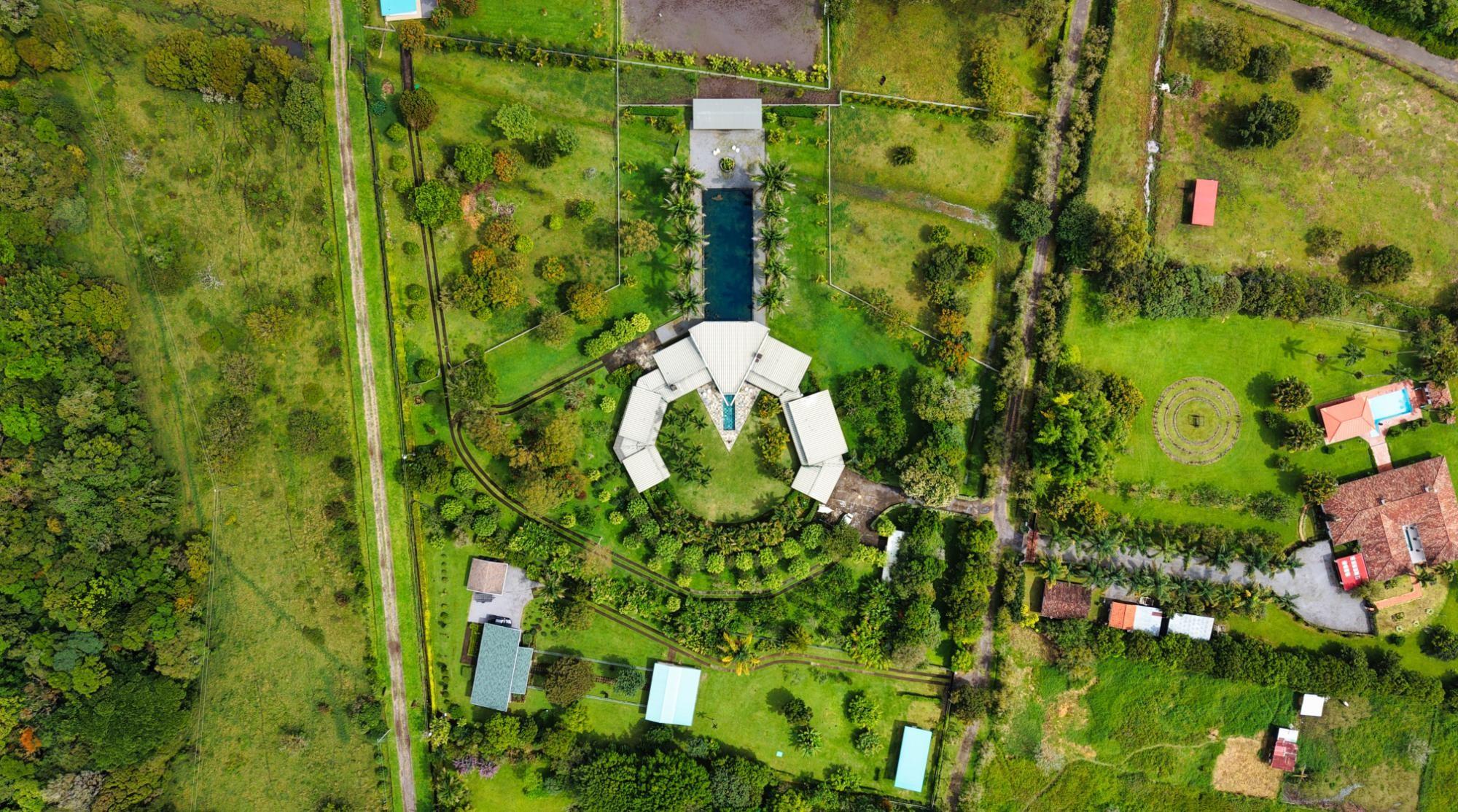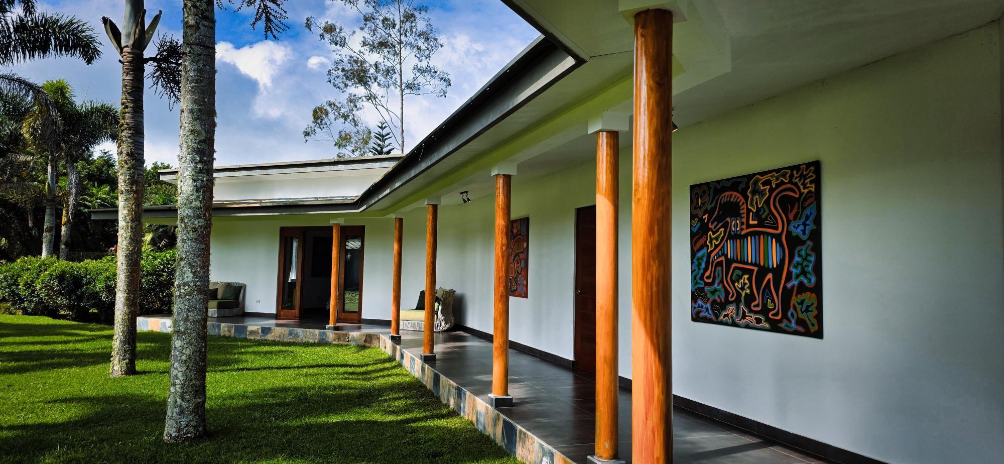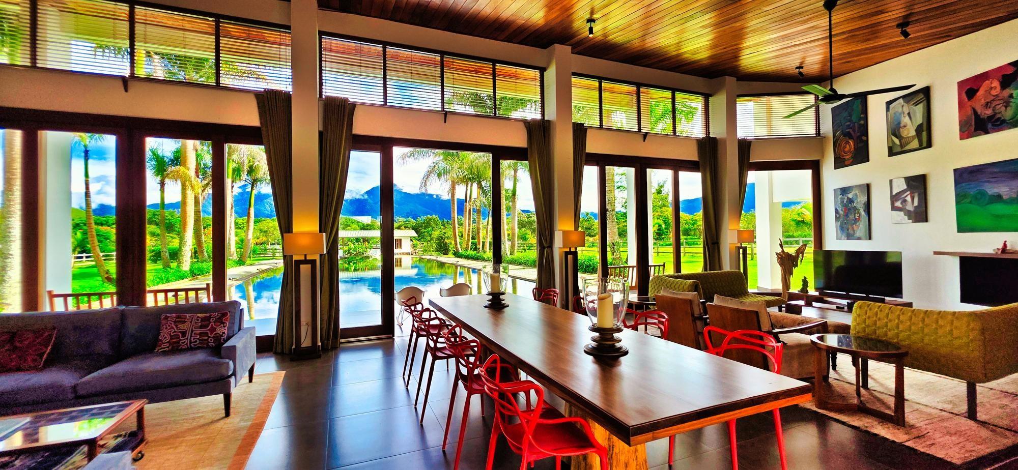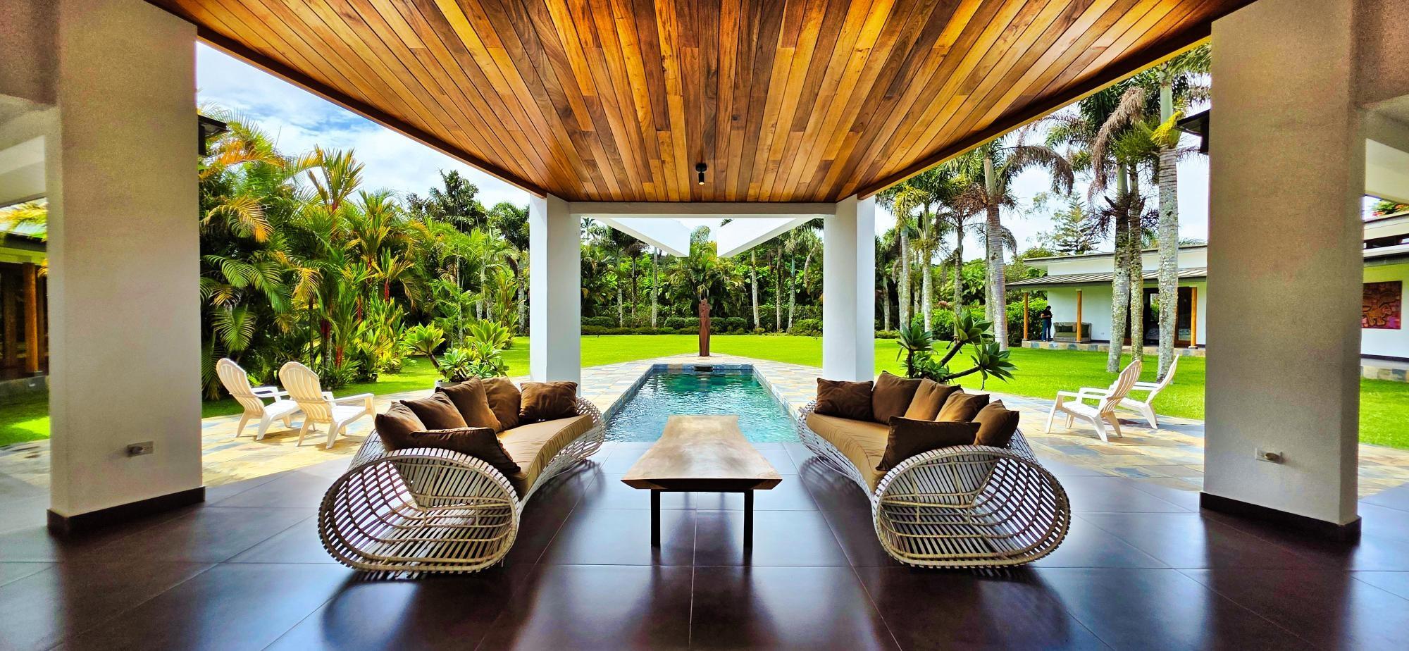 Casa de lujo en venta en volcán, Tierras Altas, Chiriquí – Una joya arquitectónica enclavada en el prestigioso sector de Las Lagunas, rodeada de naturaleza, montañas y el aire fresco de las tierras altas panameñas. Esta majestuosa residencia se erige sobre un terreno privado de 1.75 hectáreas (4.32 acres), a tan solo 2.8 km (9 minutos en auto) de la vía principal de Volcán, y a pocos minutos de las emblemáticas lagunas y reconocidas fincas cafetaleras de la región. La casa principal cuenta con más de 900 m² (9,687 ft2) de construcción entre interiores y elegantes terrazas abiertas, pensadas para disfrutar de vistas panorámicas de 360° hacia las montañas y un íntimo jardín interior con piscina. La casa se ofrece como No amueblada Características destacadas: Amplia sala y comedor con ventanales de piso a techo y estanque de agua reflejante. Cocina de gran tamaño totalmente equipada con área de despensa. Tres dormitorios principales, cada uno con baño en suite. Dos apartamentos independientes con sala, cocina y habitación con baño privado, ideales para huéspedes o para generar ingresos de alquiler. Cuenta con un amplio estudio, actualmente utilizado como taller de pintura, que fácilmente puede transformarse en una oficina privada o espacio creativo según las necesidades del propietario. La propiedad dispone de un estacionamiento techado para dos vehículos en uno de sus laterales, además de un estacionamiento privado con acceso directo a la residencia. Jardines extensos con árboles frutales maduros, flores ornamentales y áreas verdes que integran la vida de lujo con el encanto natural de las tierras altas. La propiedad cuenta con su propio pozo de agua y amplios tanques de reserva, además de conexión al acueducto del IDAAN, garantizando un suministro constante y confiable. Áreas de la casa: Cerrada 459 m2 (4,940 ft2), abierta 422.84 m2 (4,940 ft2) área de piscina 30 m2 (323 ft2) La finca fue originalmente concebida con instalaciones para albergar caballos, ofreciendo amplios espacios abiertos y un establo frente a la residencia principal. Este detalle la convierte en una opción perfecta para amantes de la equitación y de la vida ecuestre de lujo. No obstante, dichas instalaciones pueden transformarse con facilidad en un gimnasio privado, un spa de alto nivel o un elegante pabellón de recreación, adaptándose a la visión y estilo de vida de su nuevo propietario. Beneficios de ubicación: Zona residencial exclusiva y segura (Buenavista – Las Lagunas).