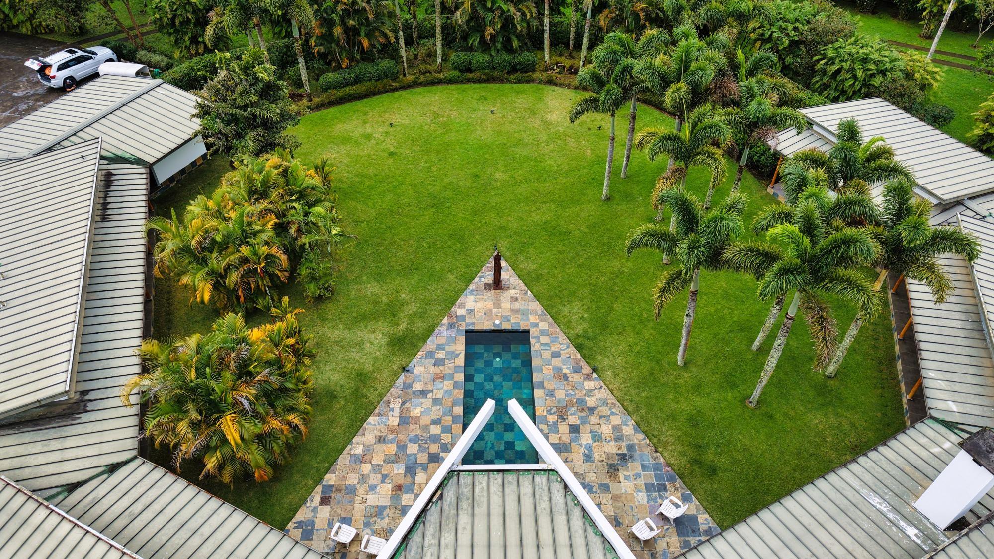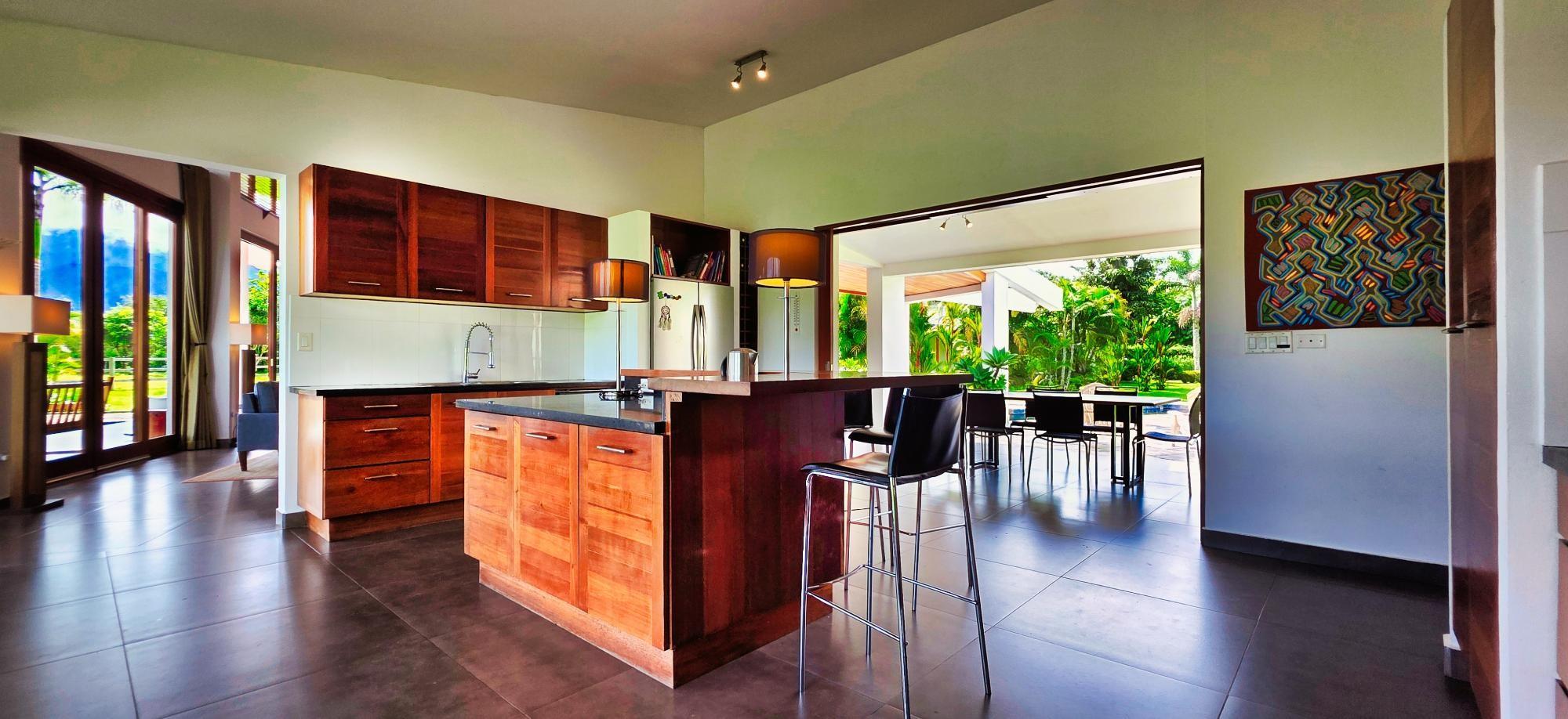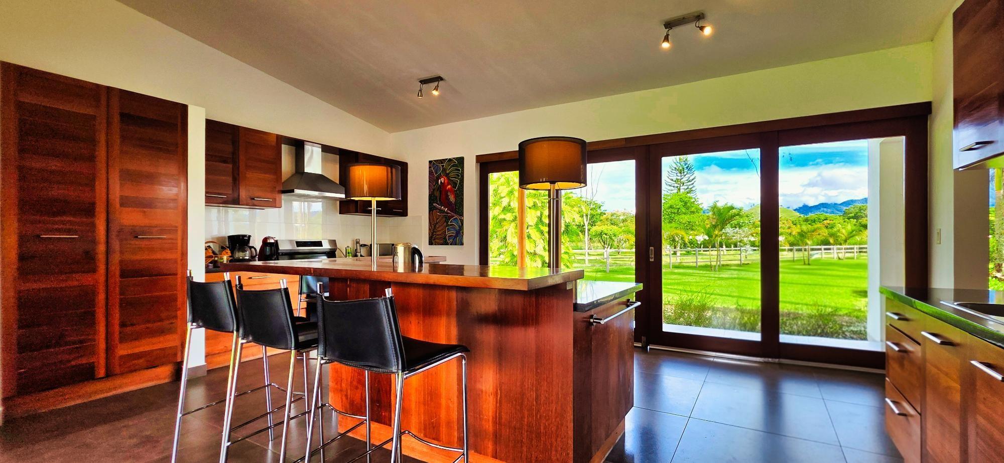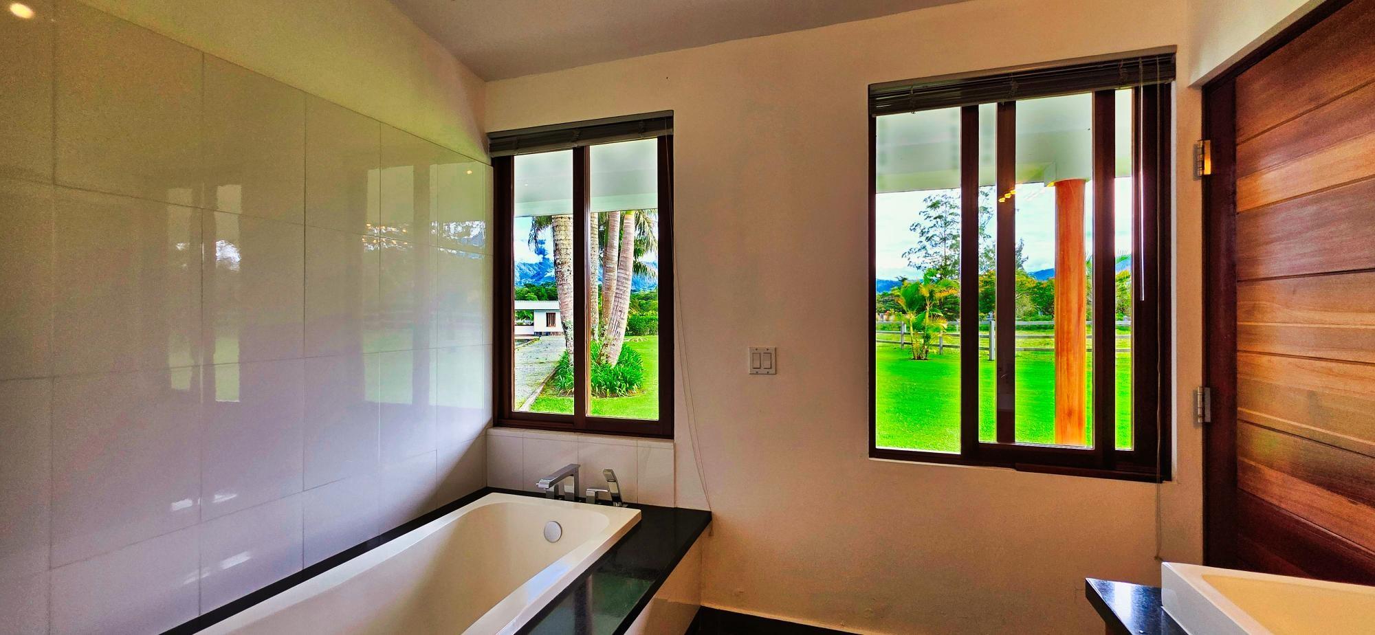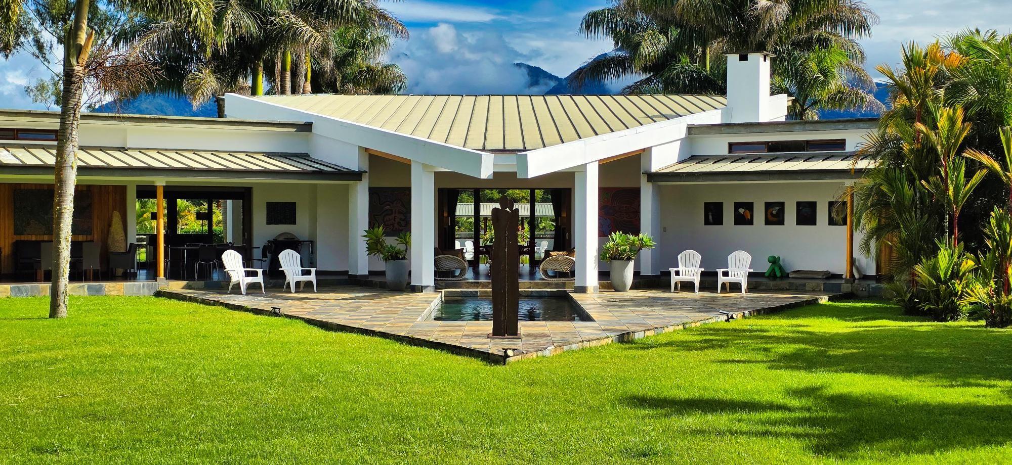 Casa de lujo en venta en volcán, Tierras Altas, Chiriquí – Una joya arquitectónica enclavada en el prestigioso sector de Las Lagunas, rodeada de naturaleza, montañas y el aire fresco de las tierras altas panameñas. Esta majestuosa residencia se erige sobre un terreno privado de 1.75 hectáreas (4.32 acres), a tan solo 2.8 km (9 minutos en auto) de la vía principal de Volcán, y a pocos minutos de las emblemáticas lagunas y reconocidas fincas cafetaleras de la región. La casa principal cuenta con más de 900 m² (9,687 ft2) de construcción entre interiores y elegantes terrazas abiertas, pensadas para disfrutar de vistas panorámicas de 360° hacia las montañas y un íntimo jardín interior con piscina. La casa se ofrece como No amueblada Características destacadas: Amplia sala y comedor con ventanales de piso a techo y estanque de agua reflejante. Cocina de gran tamaño totalmente equipada con área de despensa. Tres dormitorios principales, cada uno con baño en suite. Dos apartamentos independientes con sala, cocina y habitación con baño privado, ideales para huéspedes o para generar ingresos de alquiler. Cuenta con un amplio estudio, actualmente utilizado como taller de pintura, que fácilmente puede transformarse en una oficina privada o espacio creativo según las necesidades del propietario. La propiedad dispone de un estacionamiento techado para dos vehículos en uno de sus laterales, además de un estacionamiento privado con acceso directo a la residencia. Jardines extensos con árboles frutales maduros, flores ornamentales y áreas verdes que integran la vida de lujo con el encanto natural de las tierras altas. La propiedad cuenta con su propio pozo de agua y amplios tanques de reserva, además de conexión al acueducto del IDAAN, garantizando un suministro constante y confiable. Áreas de la casa: Cerrada 459 m2 (4,940 ft2), abierta 422.84 m2 (4,940 ft2) área de piscina 30 m2 (323 ft2) La finca fue originalmente concebida con instalaciones para albergar caballos, ofreciendo amplios espacios abiertos y un establo frente a la residencia principal. Este detalle la convierte en una opción perfecta para amantes de la equitación y de la vida ecuestre de lujo. No obstante, dichas instalaciones pueden transformarse con facilidad en un gimnasio privado, un spa de alto nivel o un elegante pabellón de recreación, adaptándose a la visión y estilo de vida de su nuevo propietario. Beneficios de ubicación: Zona residencial exclusiva y segura (Buenavista – Las Lagunas).