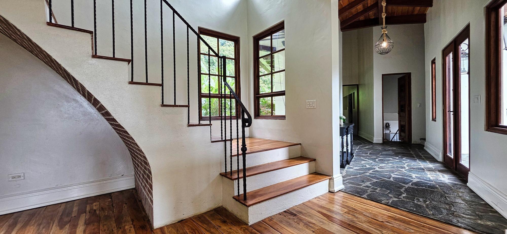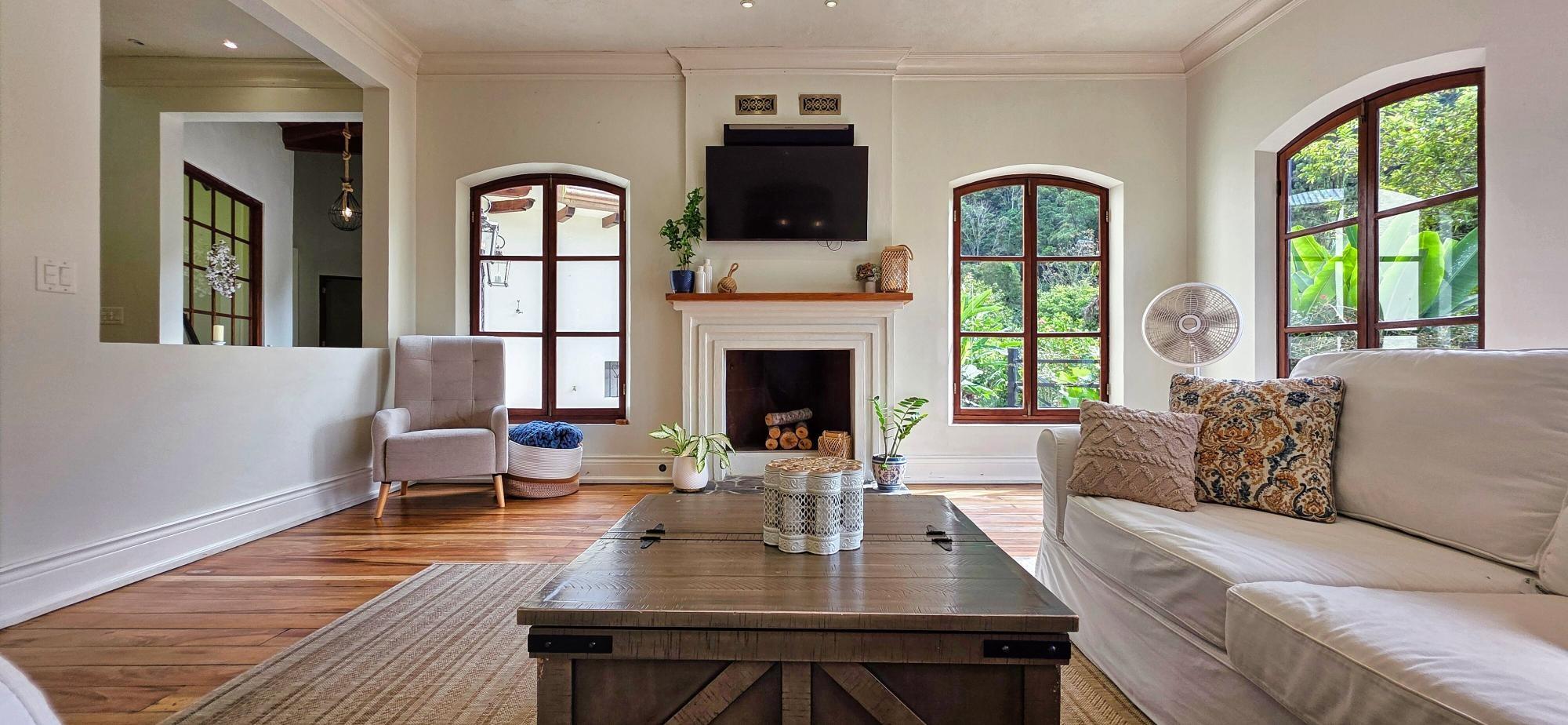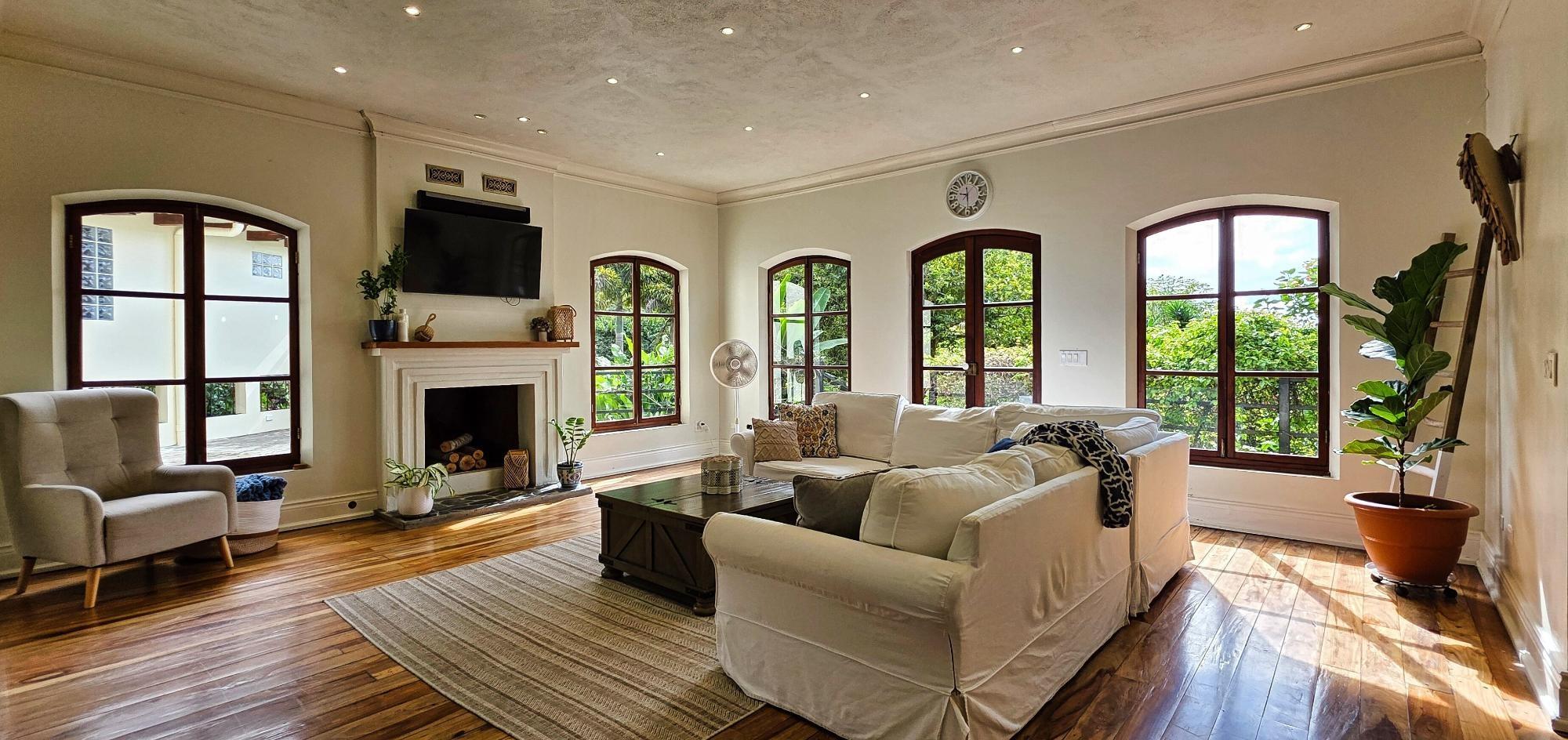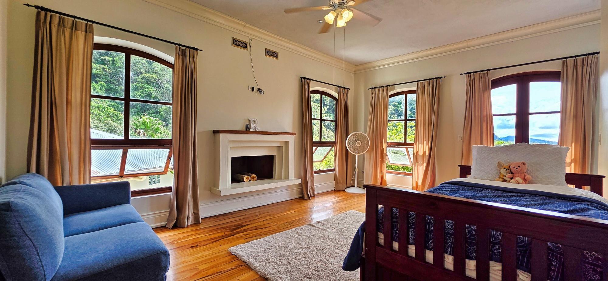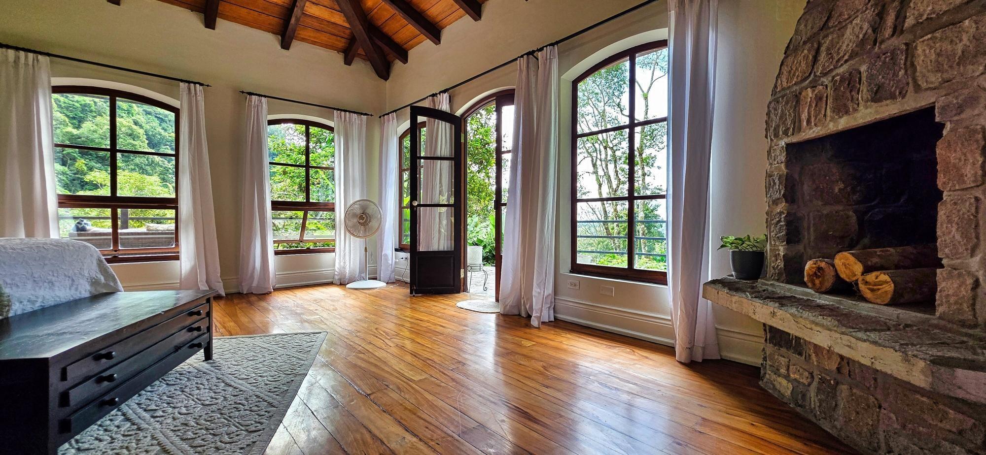 Luxury Mountain Estate in Volcan, Tizingal, Chiriquí | 7BR Home + Apartment + Guest House | 3 Acres | $1.98m Discover one of Volcán’s most exclusive mountain estates: a refined multi-residence property set on 1.21 hectares (≈3 acres) of manicured gardens, native forest, fruit trees and direct access to a pristine river. Located in the peaceful community of Tizingal, just 6.9 km (4.3 miles) from downtown Volcán, this estate offers absolute privacy, a fresh mountain climate and breathtaking natural surroundings. Ideal for luxury living, multi-generational families, eco-retreats and nature-focused investors. Property Highlights Main Residence (Luxury 2-Story Home + Basement) – Living Area: 618 m² / 6,652 ft² A grand residence designed for comfort, elegance and connection with nature. 7 bedrooms 6.5 bathrooms 3 living rooms 3 dining areas 2 open-concept kitchens Multiple balconies 3 fireplaces Mountain and garden views throughout First Floor Primary bedroom with ensuite bathroom, walk-in closet, dressing room, fireplace and private balcony Large living room with stone fireplace Gourmet kitchen with island, pantry, breakfast area and garden views Formal dining room Half bathroom for guests Office/bedroom Mudroom, foyer and staircase hall Access to the apartment and covered parking Spacious covered terrace Second Floor Second primary suite with fireplace, large bathroom and walk-in closet Two additional bedrooms with closets and private balconies Shared full bathroom Laundry / safe room Basement Level Bedroom with closet and full bathroom Large living room Game room Direct access to the front garden Independent Apartment 1 bedroom Open-concept living, dining and kitchen 1 full bathroom Private laundry Independent entrance Perfect for guests, in-laws or long-term rentals Guest House / Airbnb Cabin Fully independent two-story home currently used for rentals 3 bedrooms (1 upstair loft) Living room, dining room and kitchen, laundry/storage area. 1 bathroom Front patio Private parking Land and Outdoor Features Approximately 12,140 m² (≈3 acres)