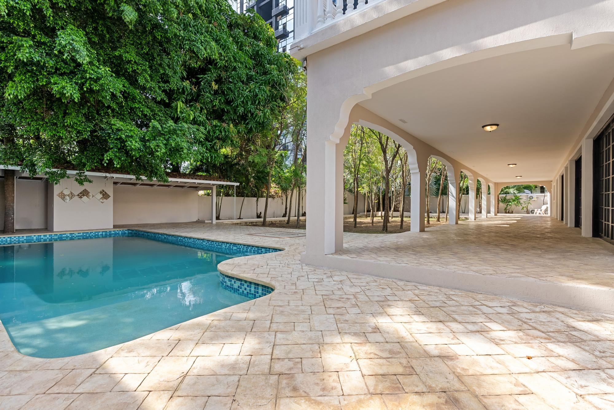 EL EPÍTOME DEL LUJO DIPLOMÁTICO EN ALTOS DEL GOLF Ubicada en el epicentro de la exclusividad y la seguridad, esta imponente residencia en Altos del Golf redefine el concepto de distinción. En un vecindario reconocido por albergar las sedes diplomáticas más importantes del país, esta propiedad de 2,022 m² de terreno y 936 m² de construcción se presenta como el activo ideal para una embajada, consulado o una familia que exija el máximo nivel de privacidad. Arquitectura Diseñada para el Éxito La residencia ofrece un diseño funcional donde la elegancia y el protocolo convergen: Zona Íntima: 4 amplias recámaras, cada una con baño privado y acceso directo a terrazas, garantizando un refugio personal inigualable. Social & Business: Gran salón y comedor formal de techos altos, oficina privada para despachos de alto nivel y una cava de vinos para los paladares más exigentes. Cocina de Autor: Estilo moderno y concepto abierto, perfecta para el día a día o el apoyo a grandes servicios de catering. Escenario para Eventos de Alto Perfil El exterior es una oda al entretenimiento. Una terraza techada de gran escala se integra armoniosamente con un jardín de diseño y una piscina privada, creando el ambiente perfecto para recepciones diplomáticas o eventos sociales de gala bajo la serenidad de uno de los sectores más tranquilos de la ciudad. Infraestructura Superior Capacidad: 5 estacionamientos internos. Logística: 2 casas independientes para personal de seguridad o cuidadores (con cocina y baño). Ubicación: A pasos del Parque Omar y conectada con los principales centros de negocios y salud de Panamá. Esta no es solo una propiedad; es el escenario donde se toman las grandes decisiones. ¿Desea agendar una visita privada para apreciar el potencial de esta joya inmobiliaria? Contáctenos hoy mismo para una asesoría personalizada.
