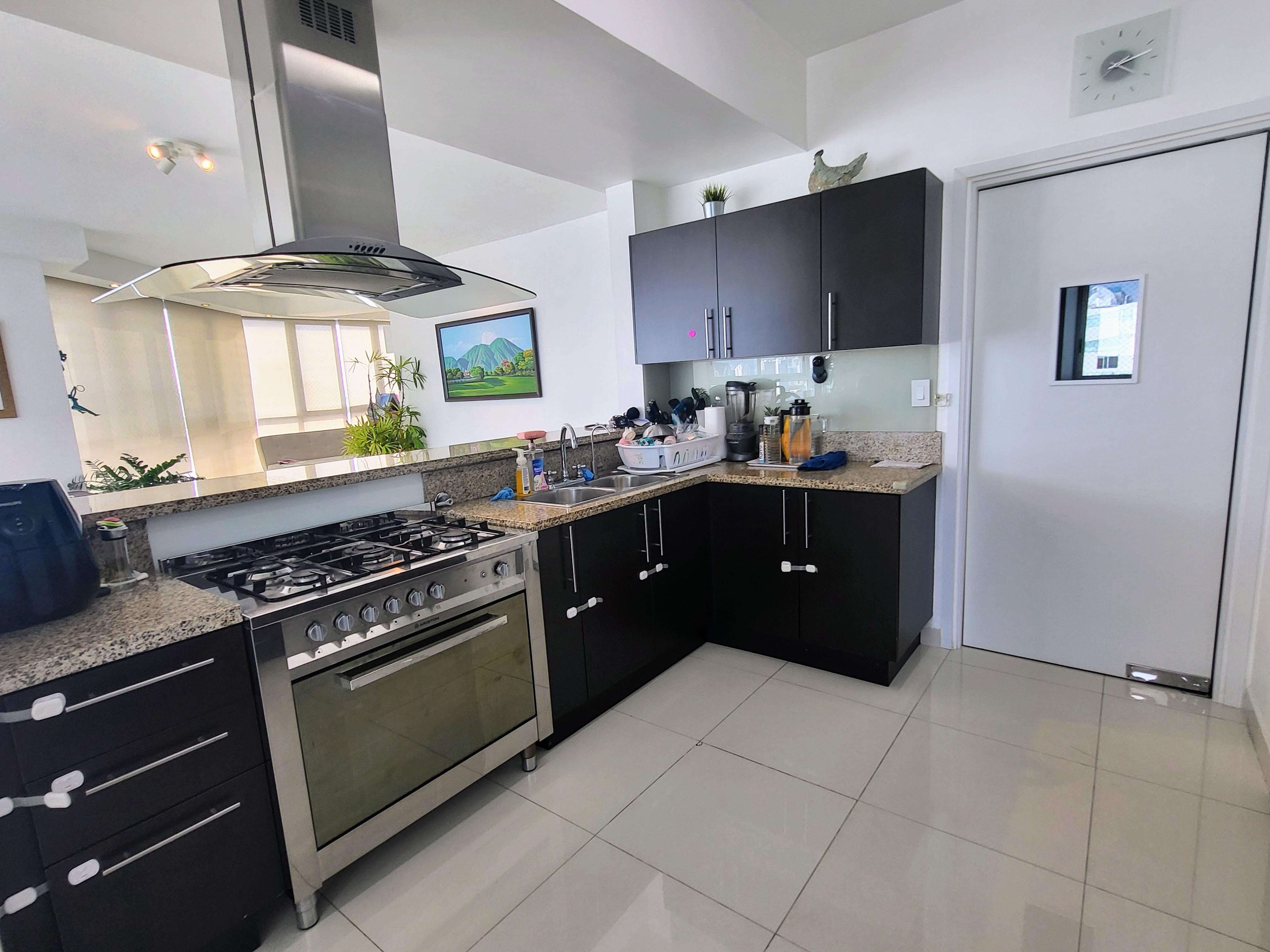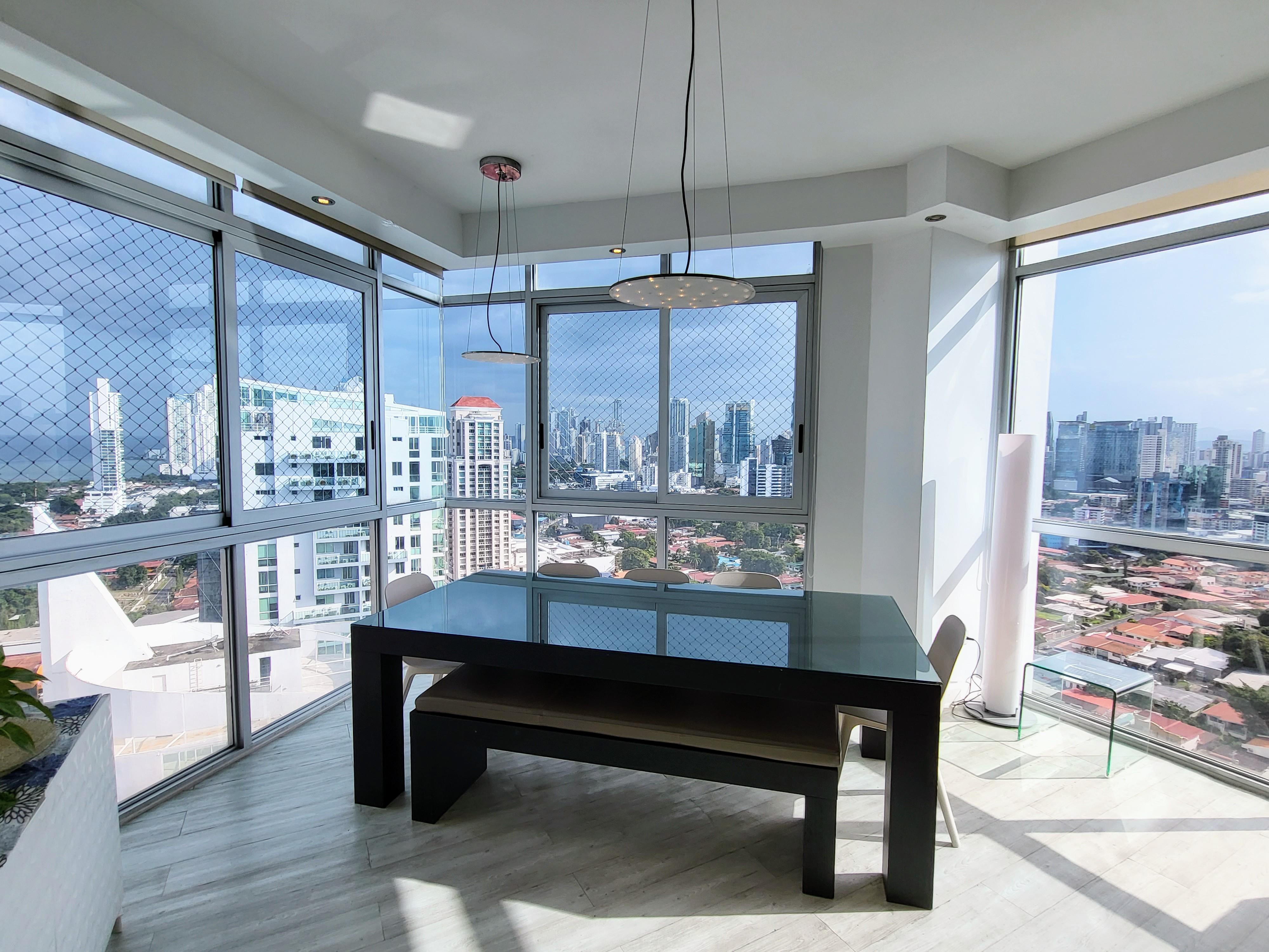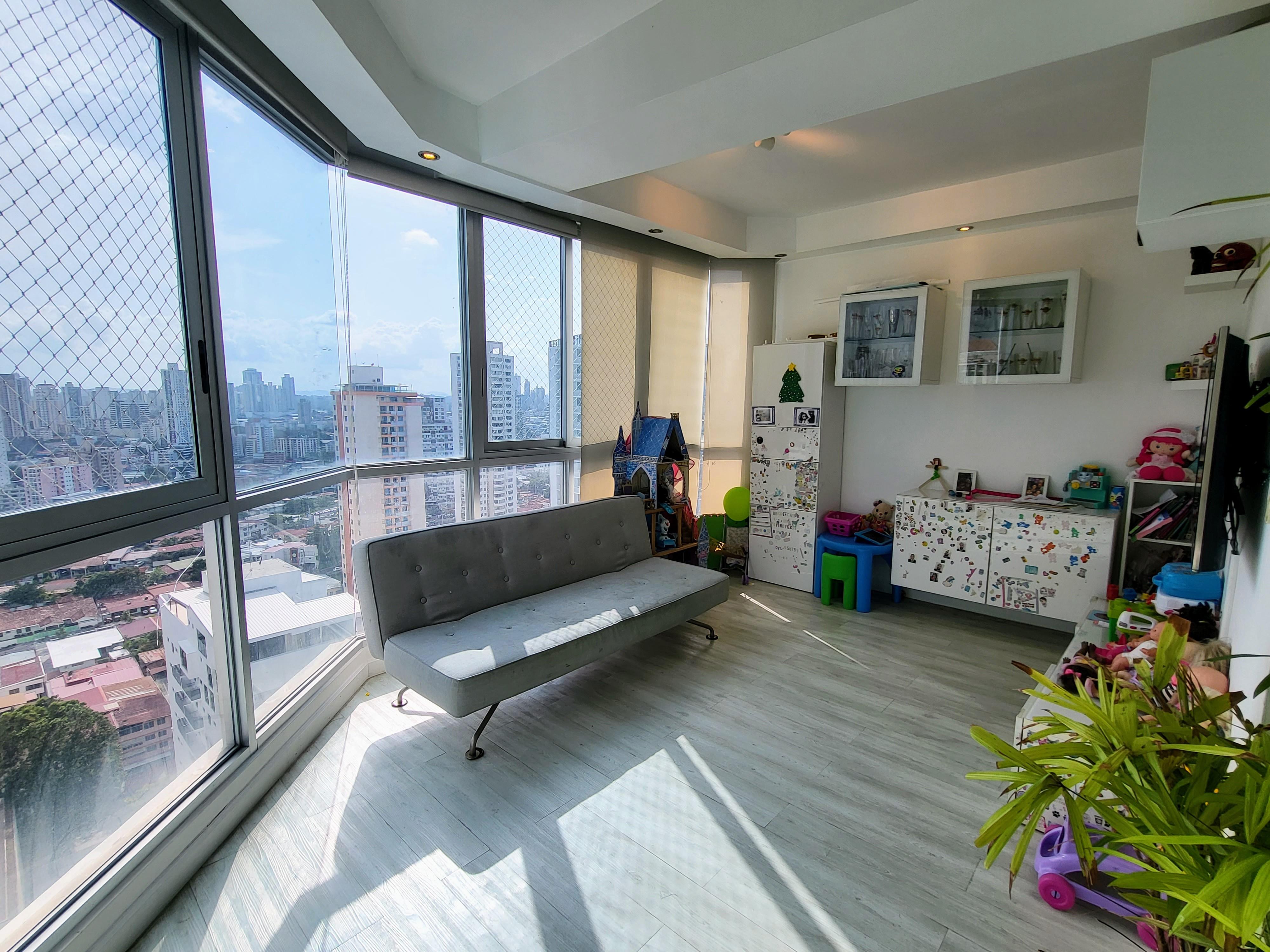 Cómodo apartamento en piso alto de 200m2 con 3 recámaras, cada una con su baño, baño para visitas, sala, comedor, den, cuarto y baño de servicio, 2 estacionamientos, balcón con espectacular vista a la ciudad y al Parque Omar.El apartamento ha sido remodelado, se le realizó trabajo de iluminación con gypsum, piso laminado en sala, comedor, den y recámara secundaria; baño de visita y de recámara secundaria remodelados, malla de seguridad para niños en todas las ventanas, Rollers black out en las recámaras y traslucidos en sala, comedor y den.Keops es un edificio familiar con solo 58 apartamentos, 26 pisos, planta eléctrica total, 2 tanques de agua y un área social con:- Piscina- Área de BBQ- Gimnasio- Salón de fiesta- Sala de juegos de niños- Parque infantilContáctame para visitar este lindo apartamento !!!